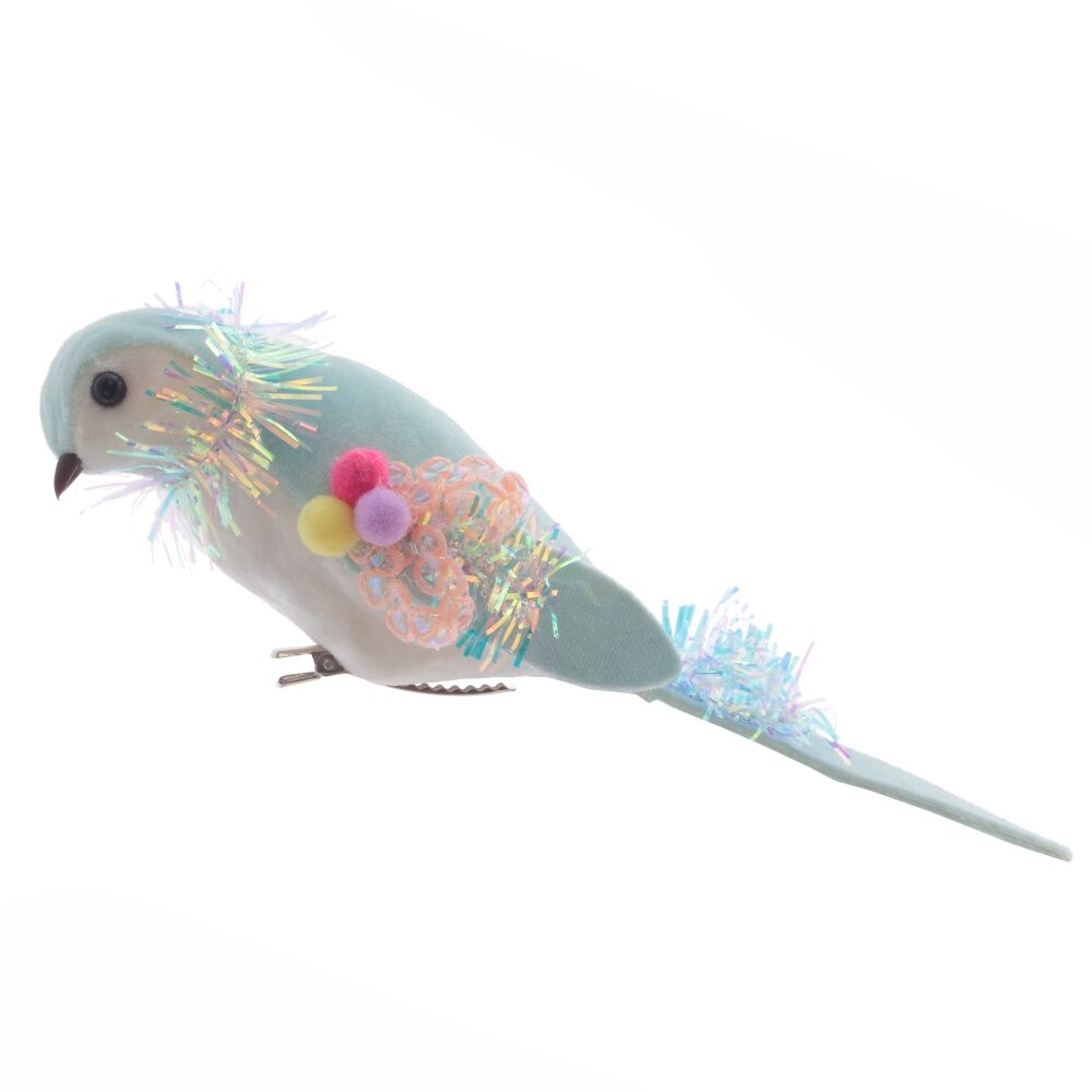 Изделие декоративное птичка, l20 w7,5 h4 см. Материал: Полимерные материалы/Текстиль Декоративное изделие Птичка — это очаровательное новогоднее украшение, созданное с предельным вниманием к деталям. Птичка выполнена в светло-голубом цвете с яркими акцентами, такими как разноцветные помпоны и блестящие элементы, придающие ей игривый вид. Она снабжена клипсой, что позволяет легко крепить ее на еловые ветки, гирлянды или другие декоративные элементы. Эти нежные пастельные тона добавят изюминку в любой новогодний интерьер, создавая атмосферу уюта и радости. Вес, кг: 0. 021