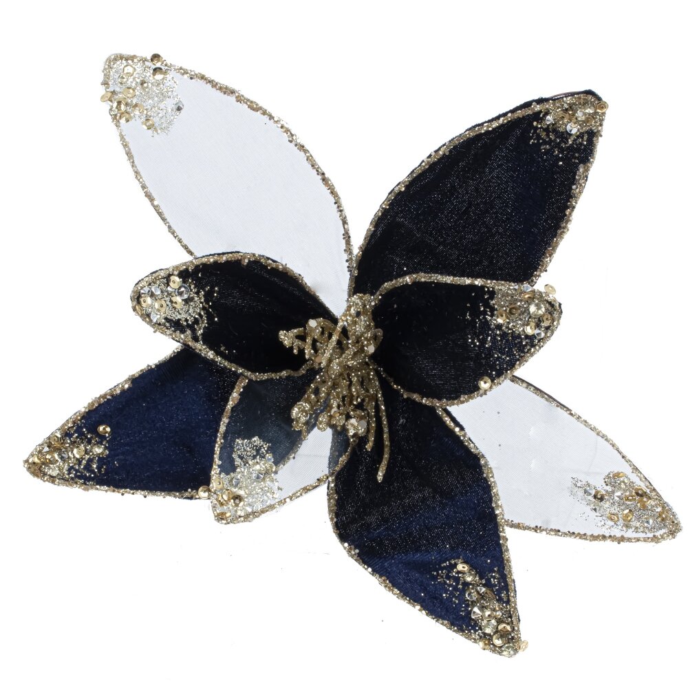 Цветок исскуственный пуансеттия (на клипсе), d 23 см, l23 w23 h16 см. Материал: Полимерные материалы/Текстиль Декоративное украшение в виде цветка пуансеттии — элегантный и яркий элемент декора, идеально подходящий для праздничного оформления интерьера. Пуансеттия традиционно ассоциируется с Рождеством и создаёт атмосферу уюта и тепла. Украшение можно использовать для декорирования ёлок, венков, подарков, столов или стен. Благодаря прочным материалам и удобному креплению, цветок надолго сохранит форму и привлекательный внешний вид. Вес, кг: 0. 056