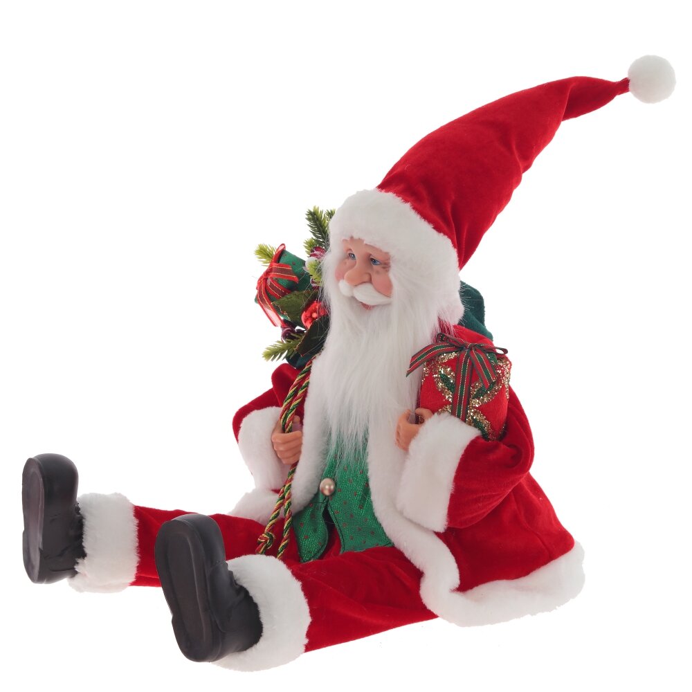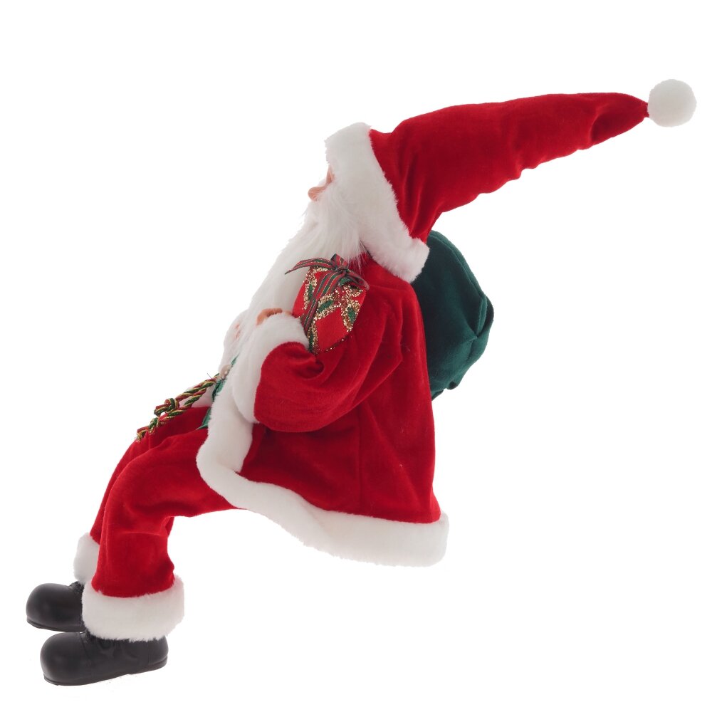 Дед мороз, l26 w18 h60/25 см. Материал: Текстиль/Полимерные материалы Этот Дед Мороз станет ярким акцентом в вашем праздничном интерьере. Его реалистичное лицо, руки и сапоги выполнены из полимерных материалов, а свисающие ноги придают ему динамичность. Облачённый в традиционный яркий красный бархатный костюм, он радует всех вокруг. Мешок с подарками на плече символизирует радость и приближение праздника, наполняя дом атмосферой волшебства и улыбок. Идеален для размещения под елочкой! Вес, кг: 0. 53