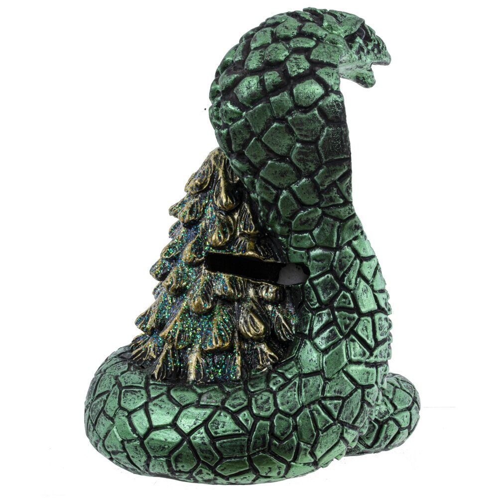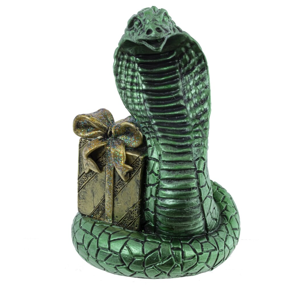 Копилка Змея – очаровательный новогодний сувенир, символизирующий наступающий год. Выполненная из полимерного материала в цвете зеленый металлик, эта копилка имеет форму змеи-кобры, которая ловко обвивается вокруг подарка или елочки, создавая праздничное настроение. Детализированная кожа змеи придает изделию реалистичный вид. На задней стороне подарка или елочки предусмотрено отверстие для монет, а на нижней расположен удобный клапан, облегчающий извлечение накопленных средств. Копилка Змея – это не только украшение для интерьера, но и замечательный подарок, который напомнит о важности сбережений и принесет удачу в год змеи.