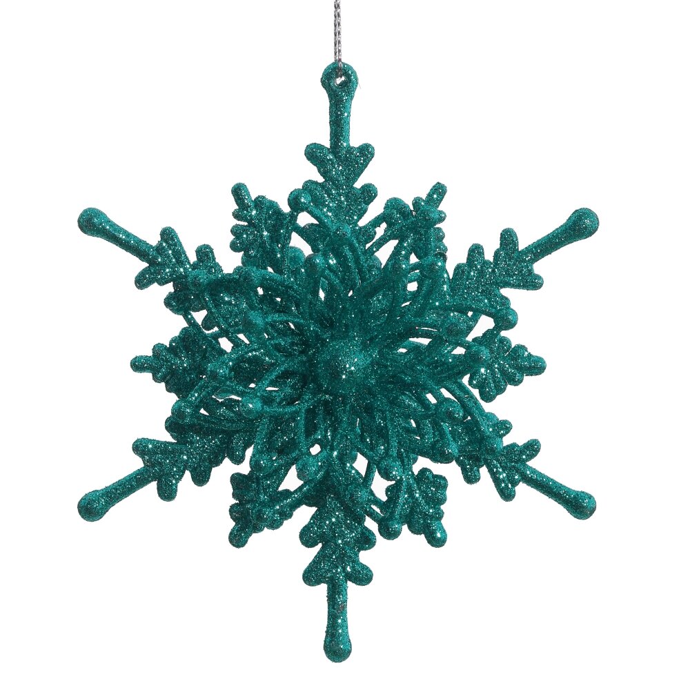 Украшение новогоднее снежинка, l12 w6 h13 см. Материал: Полимерные материалы Елочное украшение Снежинка выполнено из высококачественного полимерного материала и отличается ярким бирюзовым цветом с переливами блестящего глиттера. Отличается объемной формой, которая создает эффект легкости и нежности. Это украшение станет идеальным дополнением для новогодней елки, наполняя атмосферу романтикой и изяществом. Вес, кг: 0. 052