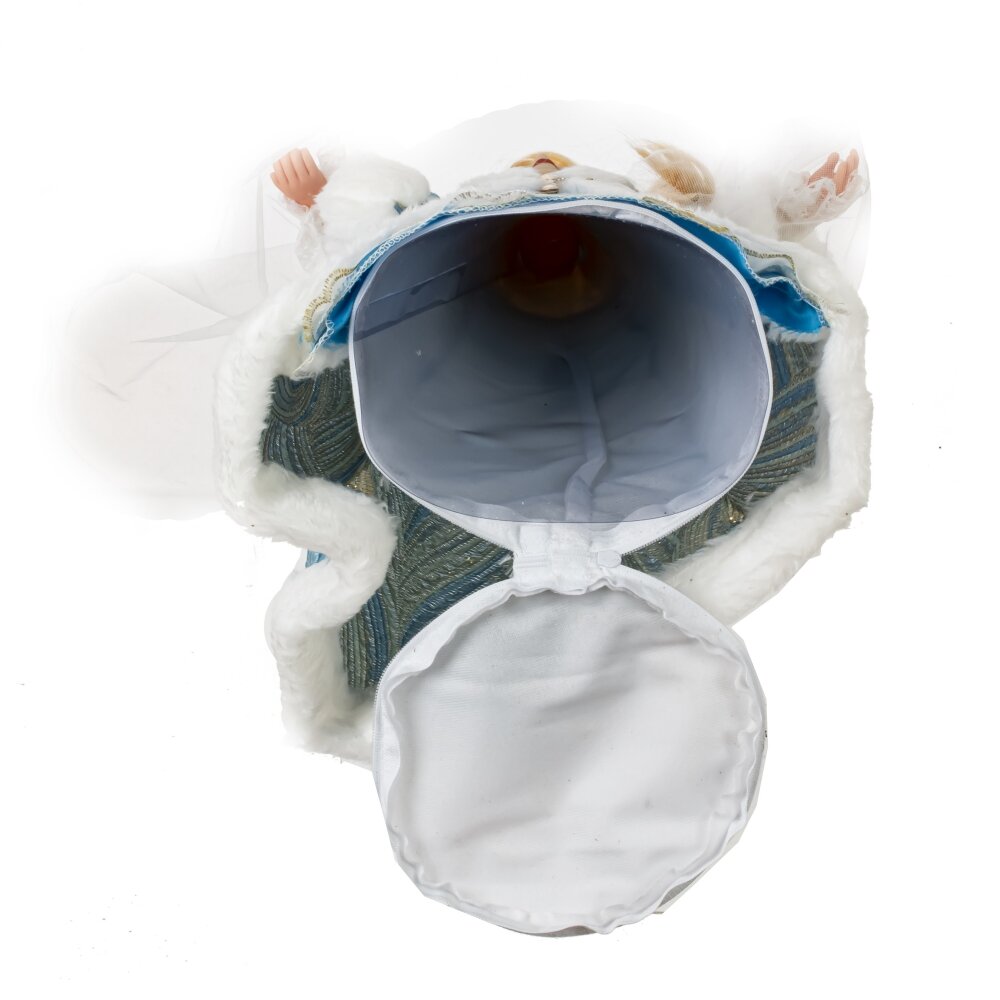 Снегурочка с ёмкостью для конфет, l23 w16 h53 см. Материал: Полимерные материалы/Текстиль Снегурочка с ёмкостью для конфет — это невероятно красивая декоративная кукла высотой 53 см. Её изящное лицо и кисти рук выполнены из полимерных материалов. Она облачена в роскошный голубой наряд с меховой отделкой, украшенной золотыми деталями. На голове Снегурочки кокошник с фатой, а длинная светлая коса добавляет её образу очарования. Под платьем находится ёмкость для конфет, что делает эту куклу прекрасным подарком для маленьких и больших любителей сладостей. Вес, кг: 0. 4
