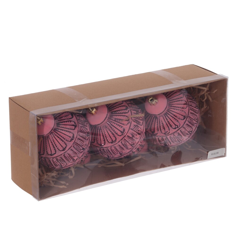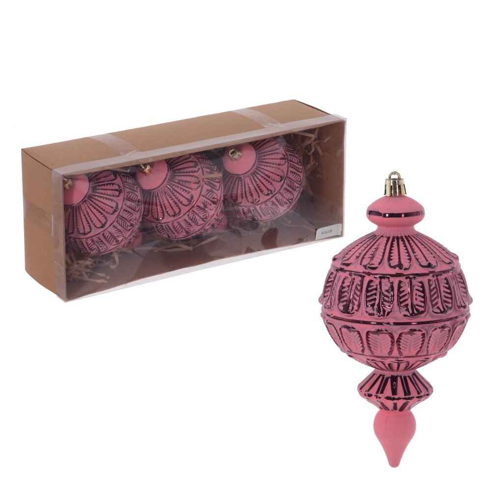 Набор из 3шт украшение новогоднее шар, l28 w7,5 h11 см. Материал: Полимерные материалы Набор из трех декоративных розовых новогодних украшений с изысканными узорами, упакованных в коричневую коробку с прозрачной пластиковой крышкой. Само изделие в виде шара, диаметром 7 см, длиной 14 см, сверху и снизу которого имеются фигурные элементы в виде вытянутых капелек. Окрашивание выполнено в технике искусственного состаривания. Красивые украшения придадут праздничный вид елке и интерьеру. Наборы из этой серии: 807920, 807921 Вес, кг: 0. 12
