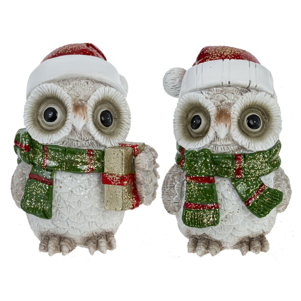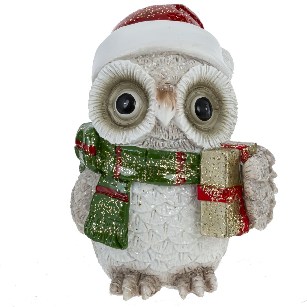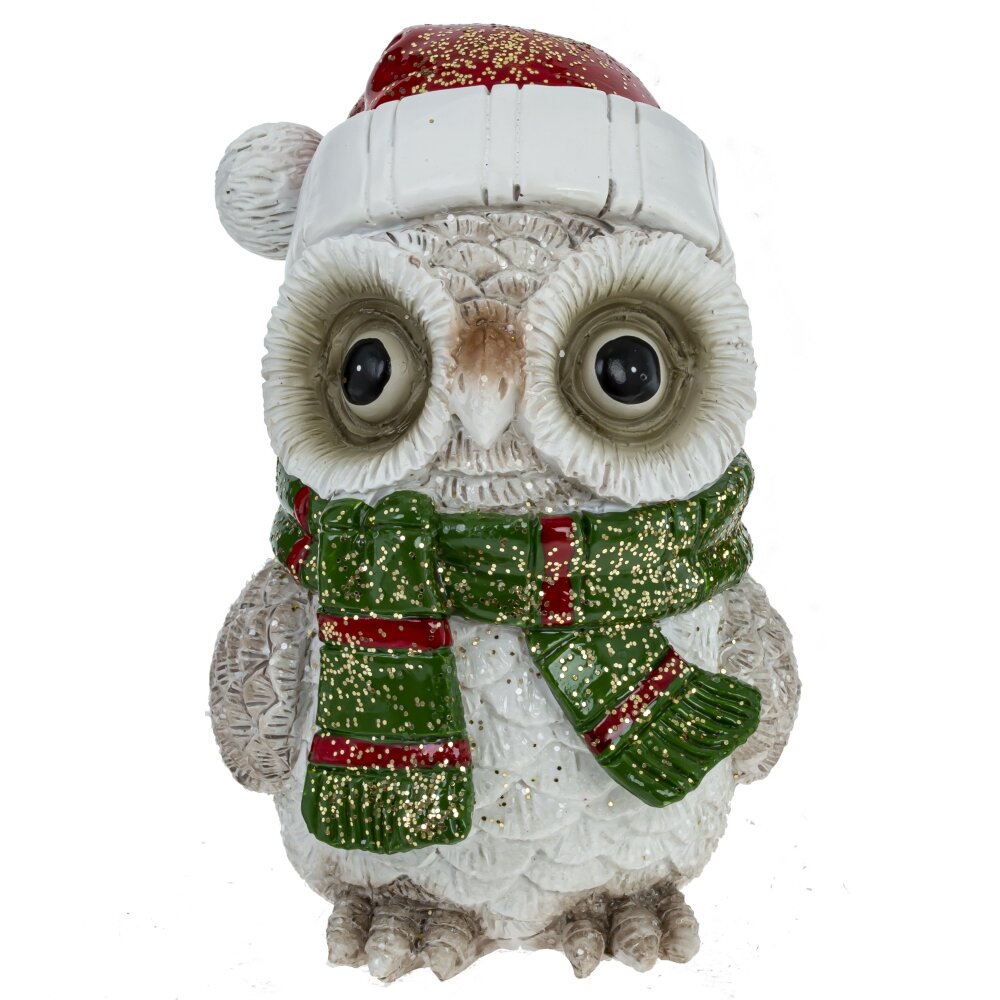 Очаровательная  фигурка совы добавит в ваш дом праздничного настроения и сказочного очарования. Сова одета в новогодний колпачок, словно пришла к вам прямо из волшебной новогодней сказки. Она украшена элементами в ярких новогодних цветах, а так же блестящим шиммером , что придает ей особый праздничный вид. Эта сова будет прекрасно смотреться на каминной полке, на праздничном столе или на полке с другими новогодними украшениями. Она привнесет в ваш интерьер нотки сказочного настроения.