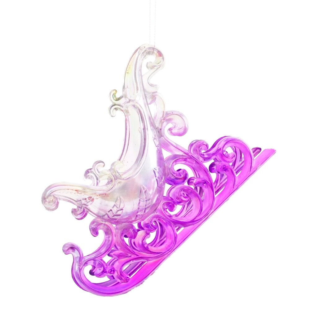 Украшение новогоднее сани, l14,5 w5 h10 см. Материал: Полимерные материалы Новогоднее украшение Сани выполнено из прозрачного полиакрила и выглядит так, будто это ледяные сани Снежной королевы. Их утонченная форма и резные полозья создают ощущение волшебства, а фиолетовый отлив добавляет загадочности и эффектно переливается на свету. Это украшение станет изысканным акцентом на вашей новогодней елке, привлекая внимание и наполняя пространство атмосферой зимней сказки. Вес, кг: 0. 042