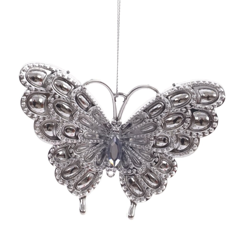 Украшение новогоднее бабочка, l11,5 w2 h9 см. Материал: Полимерные материалы Новогоднее украшение Бабочка — это изысканное елочное изделие, выполненное из полимерного материала в элегантном серебряном цвете. Узор на крыльях бабочки добавляет элемент художественности и утонченности, а благодаря глянцевой поверхности создается эффект сияния, привлекающий взгляд. Это украшение отлично впишется в любой новогодний декор. Бабочка символизирует метаморфозы и новые начинания, что делает ее идеальным дополнением к волшебной атмосфере зимнего праздника. Вес, кг: 0. 042