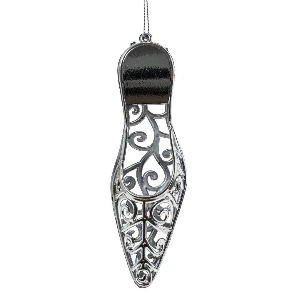 Новогоднее украшение Туфелька — это изыскательное и легкое изделие, выполненное из полимерных материалов в серебряном цвете. Его глянцевая поверхность прекрасно отражает свет, добавляя сияния вашему новогоднему декору. Элегантная туфелька с аккуратным каблучком и ажурными деталями выглядит как миниатюрное произведение искусства, которое радует глаз и создает праздничное настроение. Это украшение станет прекрасным акцентом на елке, подчеркивая вашу любовь к стилю и утонченности. Подарите себе немного сказки с этим чарующим украшением!