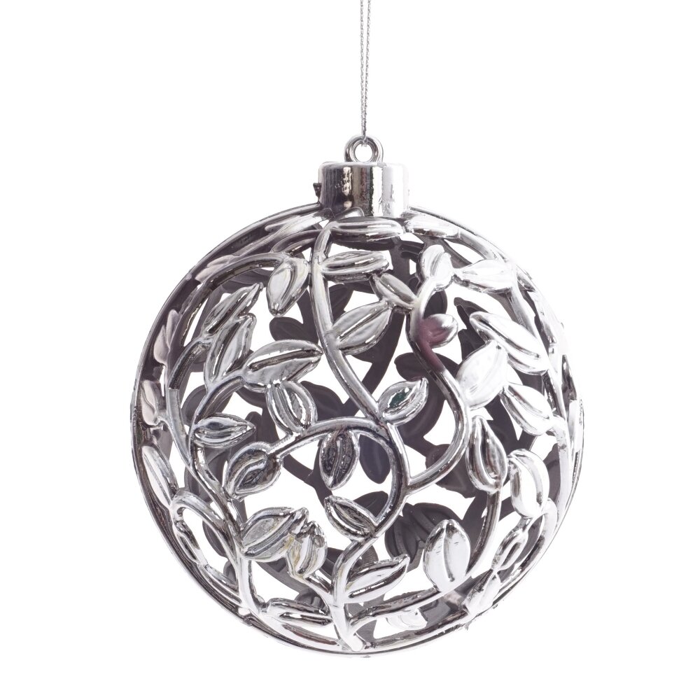 Украшение новогоднее шар, d 10 см, l10 w10 h11 см. Материал: Полимерные материалы Ажурный шар серебряного цвета с блестящим напылением станет стильным и лаконичным украшением в новогоднем декоре. Великолепно гармонирует с любым убранством новогодней ели. Вес, кг: 0. 035