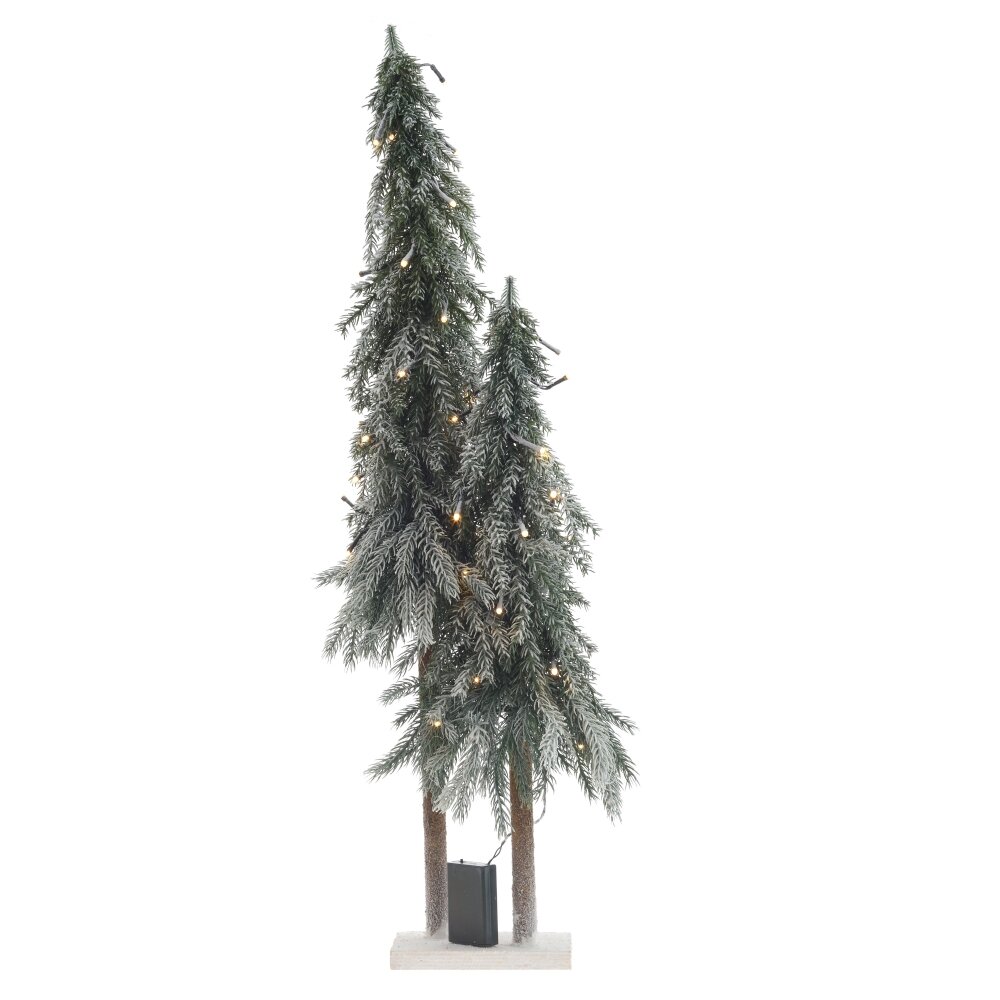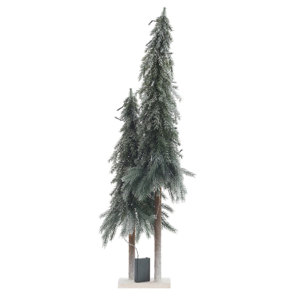 Декоративное изделие с подсветкой Елка привнесет уют и атмосферу праздника в ваш дом. Оно состоит из двух искусственных елочек на небольшой прямоугольной подставке. Елки выглядят очень натуралистично, как будто вы принесли частичку леса в свой интерьер. Веточки слегка припорошены инеем и декорированы гирляндой с теплым белым светом, создавая мягкое освещение. Питание осуществляется от трех батареек типа АА (в комплект не входят).