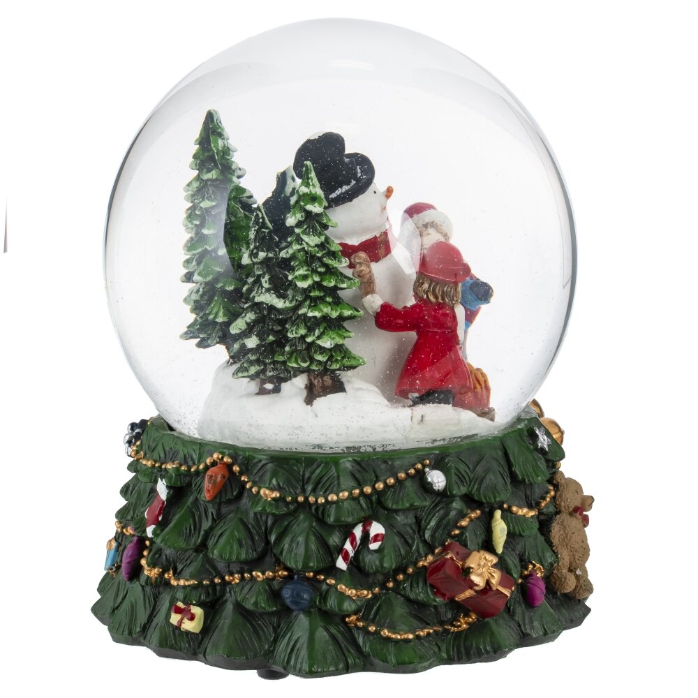Фигурка декор в стекл шаре снеговик (подсв, муз, вьюга, Aaх3 н/п), D 14 см, L15,5 W15,5 H20 см
