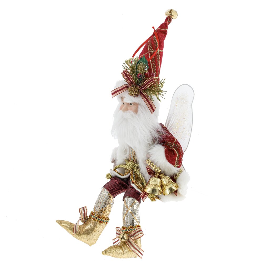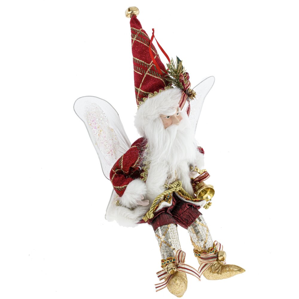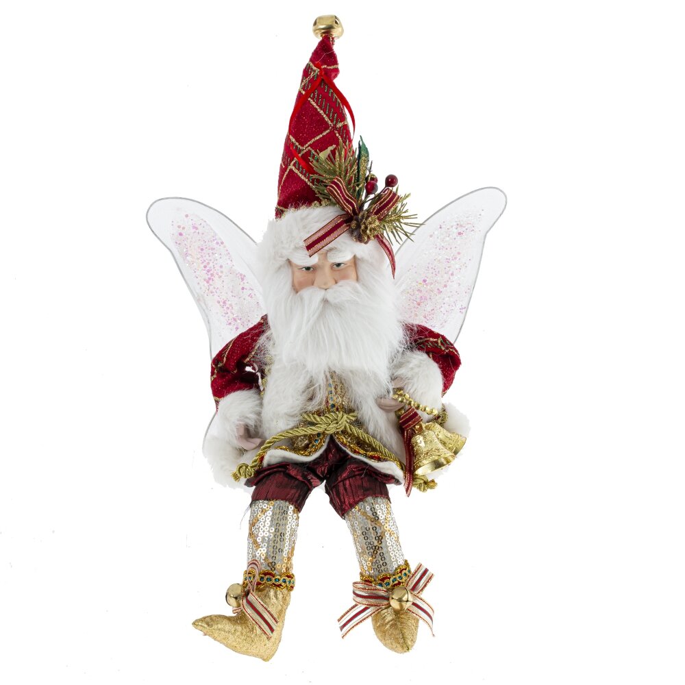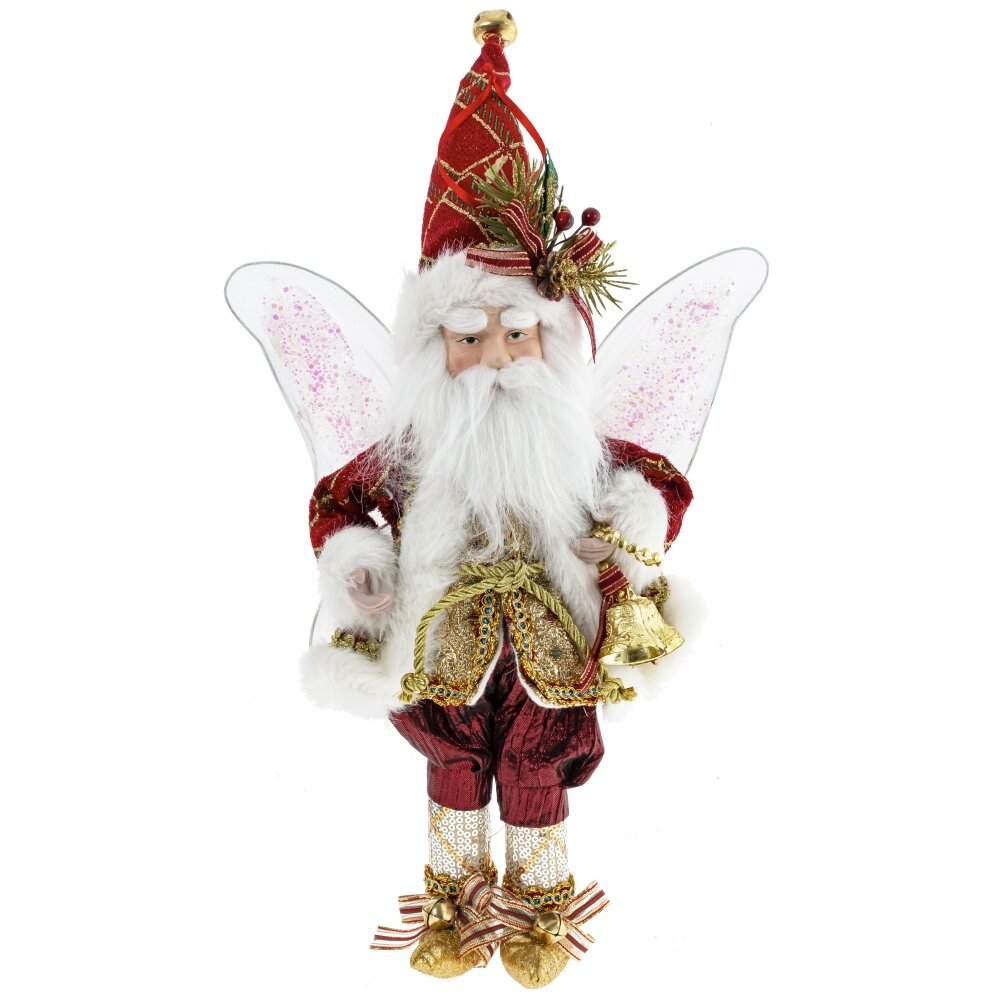 Украшение новогоднее Дед Мороз - небольшая подвесная игрушка высотой 45 (в сидячем виде 35 см). Дед Мороз с крылышками эльфа в нарядном красном костюме держит золотой колокольчик. Руки и ноги можно гнуть за счет проволоки внутри. На колпаке есть петелька для подвешивания. Он добавит уют и праздничное настроение в ваш интерьер.