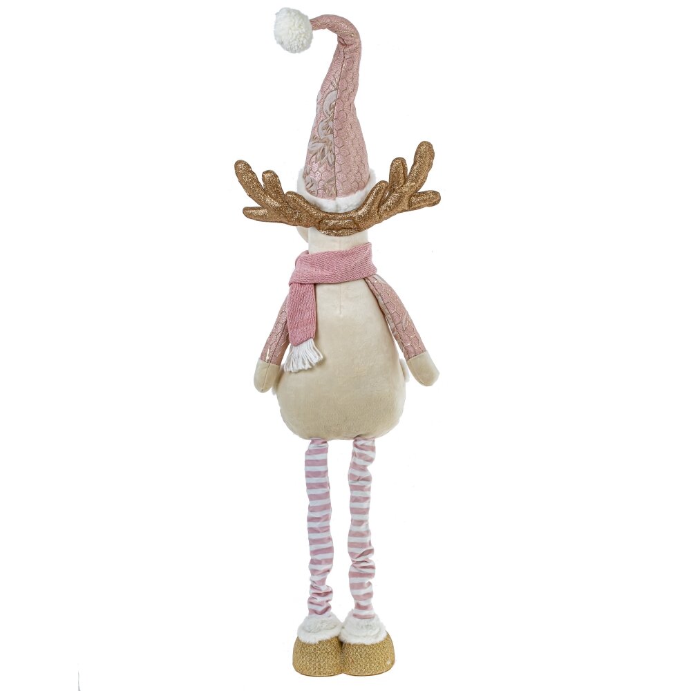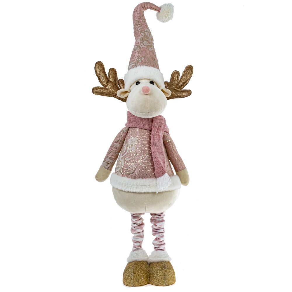 Набивная игрушка Олень — это забавный интерьерный элемент, который станет ярким акцентом в новогоднем декоре. Олень выполнен в нежном розовом праздничном наряде, включая пальто и шарф, что придаёт ему особый обаяние. Длинный колпак с проволокой внутри позволяет создавать различные формы, добавляя настроение. Благодаря телескопическим ножкам высота игрушки регулируется от 46 до 106 см. Прекрасный способ создать атмосферу праздника и веселья в вашем доме!