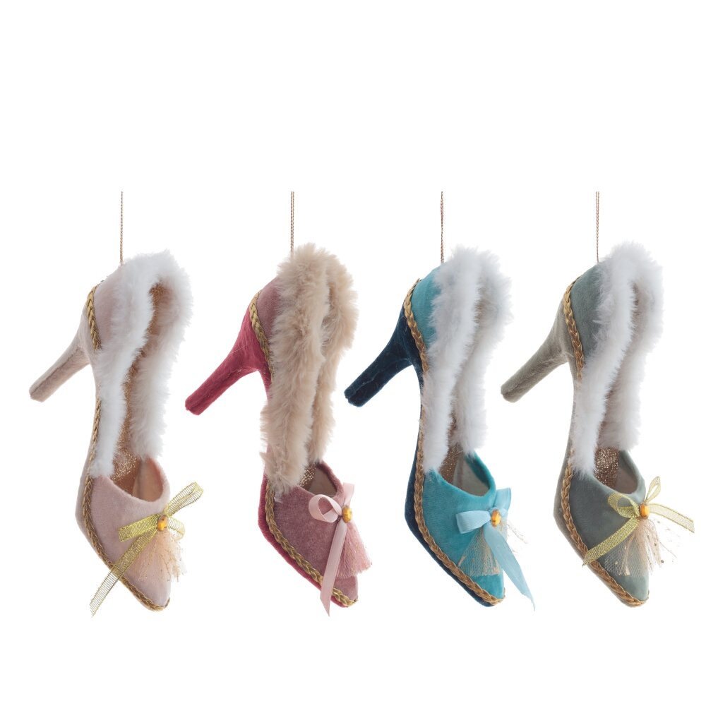 Украшение новогоднее туфелька ,l16,5 w6 h11 см, 4в.. Материал: Текстиль/Полимерные материалы Украшение новогоднее Туфелька представлено в четырех цветовых вариантах: бирюзовом, зеленом, светло-розовом и бордовом. Изготовлены из пенопласта обтянутого мягким бархатным материалом. Украшены меховой отделкой и элегантным бантиком. Создадут уютную атмосферу праздника в вашем доме! Эти очаровательные туфельки будут отлично смотреться на полке, камине или елочке, добавляя уюта и сказочного настроения в ваш дом. Вес, кг: 0. 049