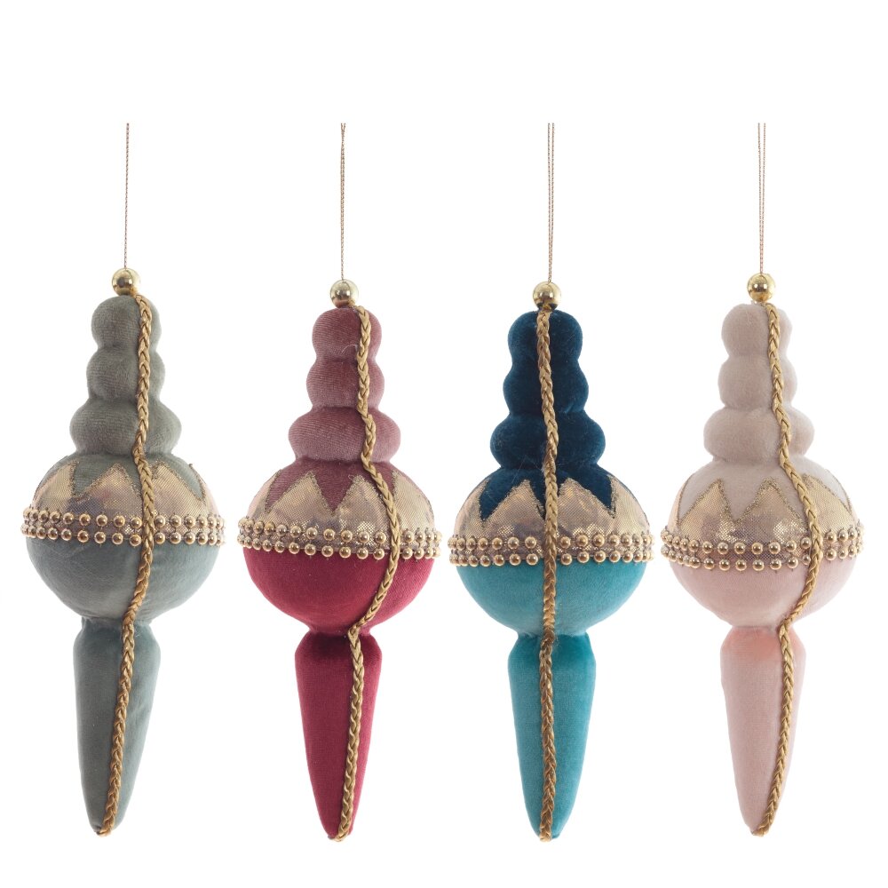 Украшение новогоднее сосулька, l8 w8 h22 см, 4в.. Материал: Текстиль/Полимерные материалы Украшение новогоднее Сосулька представлено в четырех цветовых вариантах: бирюзовом, зеленом, светло-розовом и бордовом. Эти конические элементы декора изготовлены из пенопласта, обтянутого мягким бархатным материалом с золотыми деталями. Изысканное украшение придаст вашему интерьеру волшебную атмосферу новогоднего праздника. Вес, кг: 0. 057