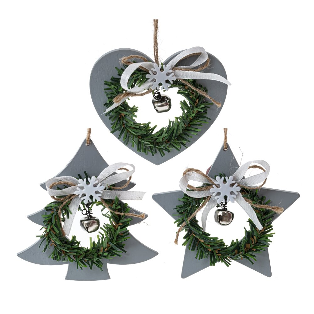 Изделие декоративное подвесное сердце/ёлка/звезда, L10,5 W1 H9,5 см, 3в.