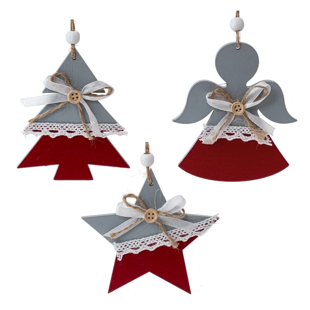 Изделие декоративное подвесное ангел/ёлка/звезда, L9 W1 H11,5 см, 3в.