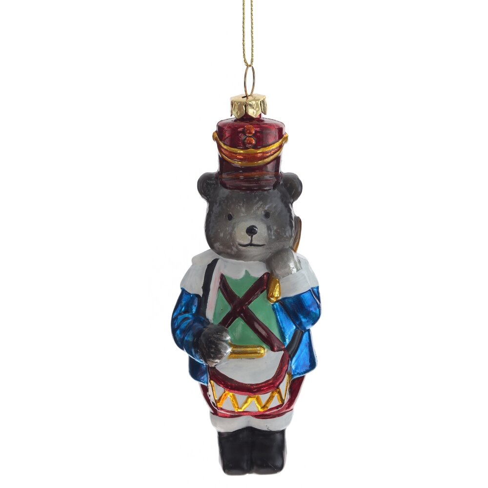 Украшение новогоднее медведь, l5,5 w5,5 h14 см. Материал: Полимерные материалы Украшение новогоднее Медведь - это новогодняя елочная игрушка, которая изготовлена из тонкого полимерного материала, что делает её легкой и безопасной для детей и животных. Медведь в образе солдатика, в кивере и с барабаном, выглядит очень празднично, а яркие краски и глянцевое покрытие придают ему вид классического стеклянного украшения. Украшение Медведь станет ярким акцентом в вашем интерьере, пробуждая теплые эмоции и желания. Оно идеально дополнит вашу елку, даря радость и впечатления в новогодние дни. Вес, кг: 0. 015