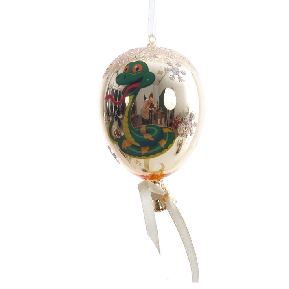Украшение новогоднее шарик со змейкой, l7 w7 h11 см. Материал: Стекло Новогоднее украшение “Шарик со змейкой, украшенный снежинками - это не просто украшение, это стильный акцент, который создаст атмосферу праздника и уюта в вашем доме. Это утонченное и элегантное украшение в форме воздушного шара станет прекрасным дополнением к вашему новогоднему декору. Вес, кг: 0. 022