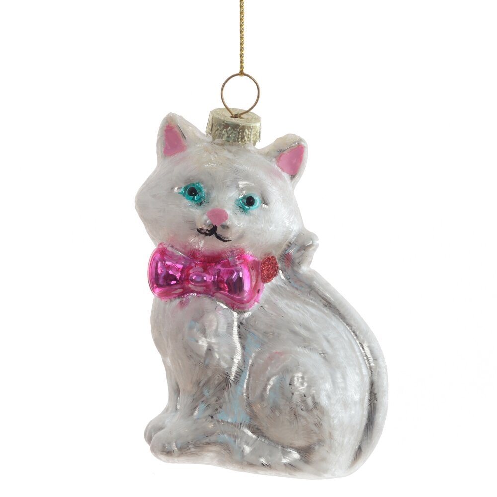 Украшение новогоднее кошечка, l7 w4,5 h10 см. Материал: Стекло Очаровательная белая кошечка с розовым бантиком — изысканное новогоднее украшение из стекла, которое добавит элегантности и уюта вашей ёлке. Фигурка выполнена с любовью к деталям: мягкие линии, ручная роспись и нежный шиммер придают ей сказочный облик. Кошечка словно сошла с зимней открытки, чтобы подарить тепло и хорошее настроение. Это украшение идеально подойдёт для романтичного, семейного декора или в качестве трогательного подарка. Нежность, стиль и праздничная магия — в одной игрушке! Вес, кг: 0. 042