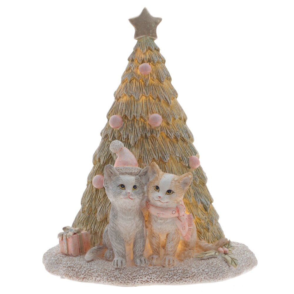 Фигурка декоративная с подсветкой кошечки и ёлка, L13,5 W11 H17 см