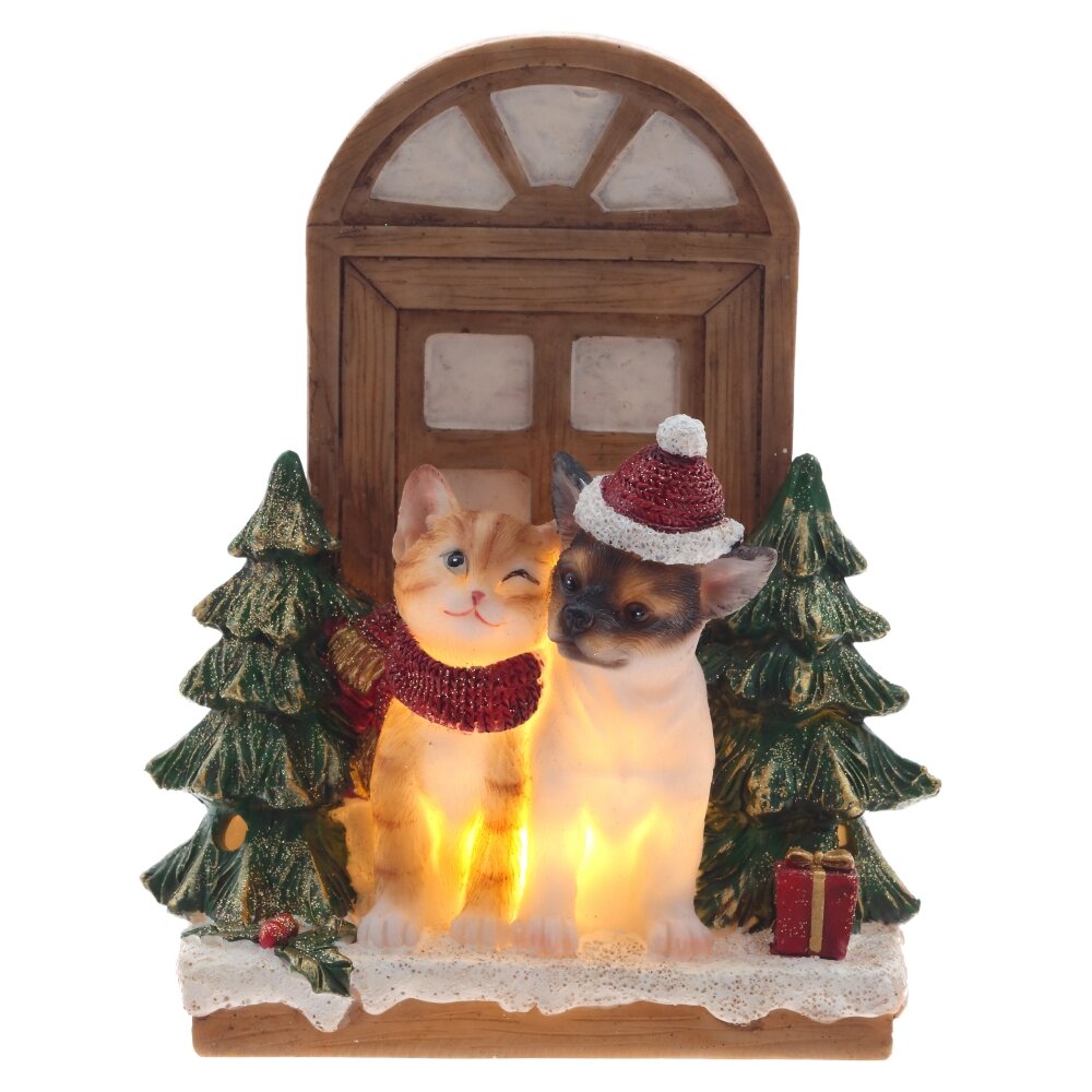 Фигурка декоративная с подсветкой кошечка и песик, L13 W8 H16 см