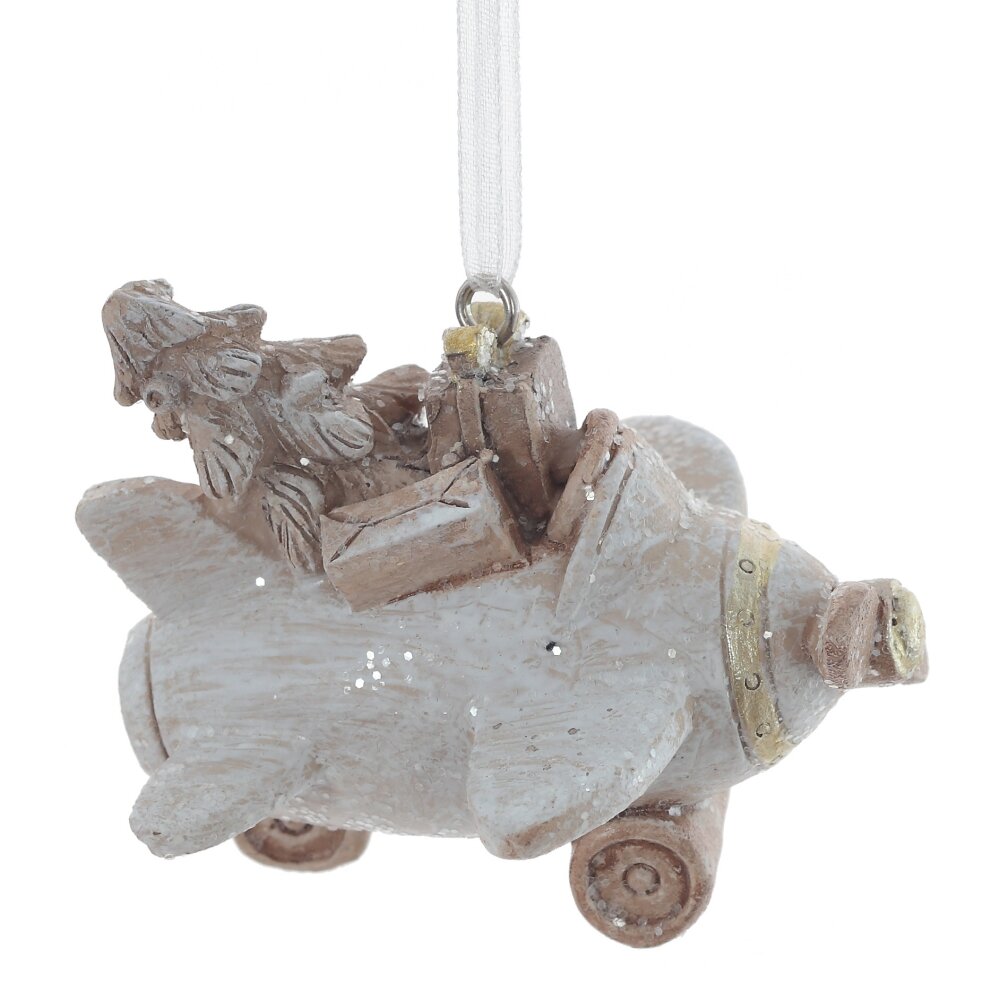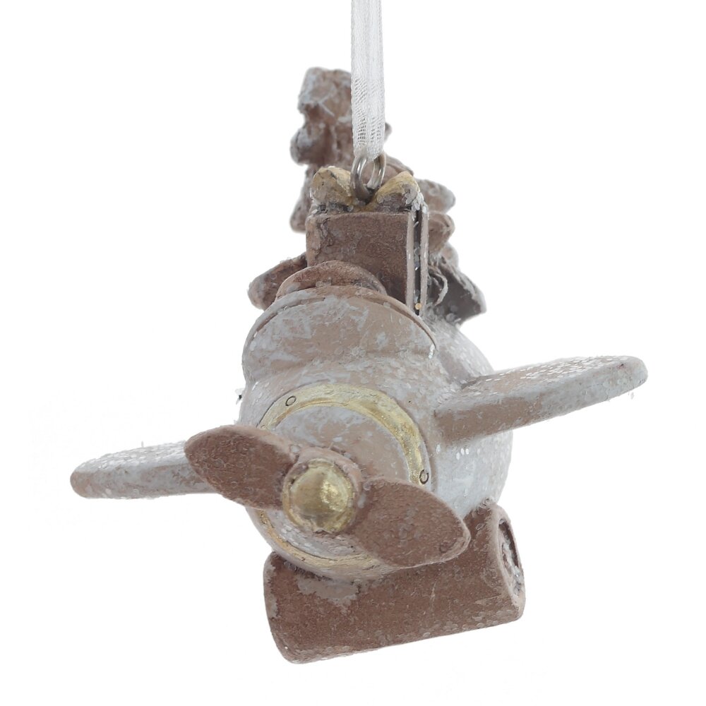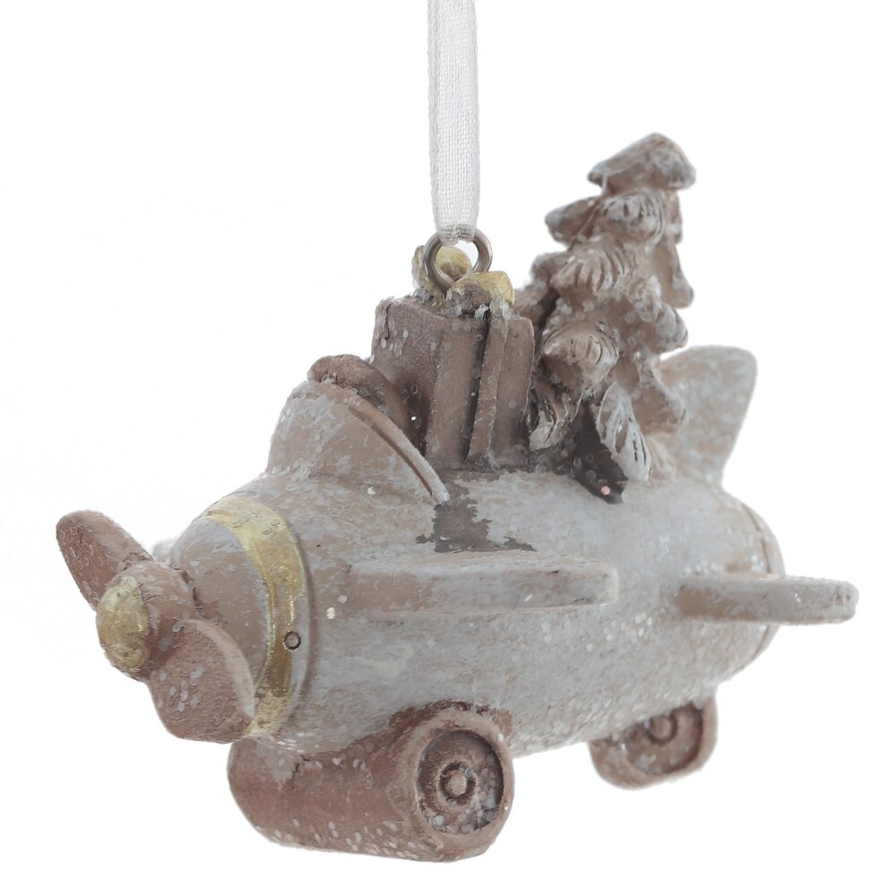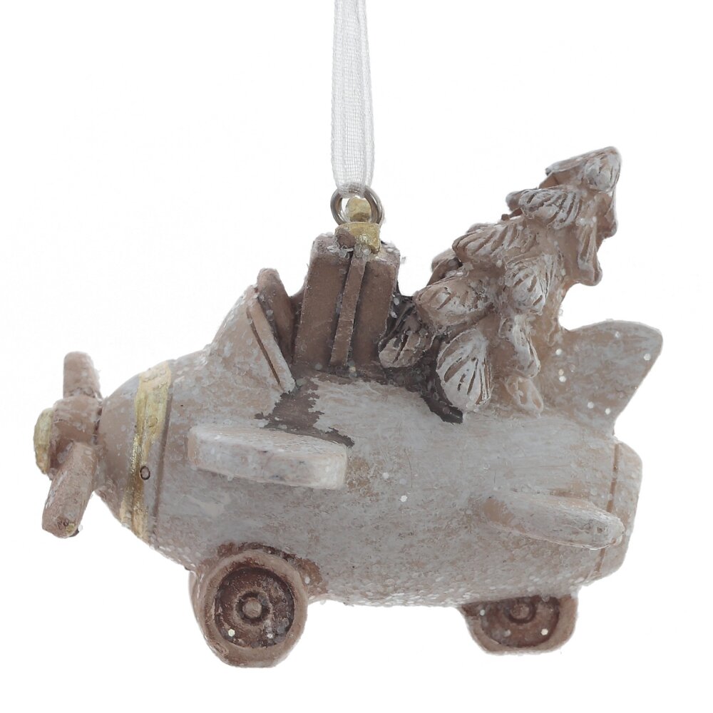 Изделие декоративное подвесное самолет, l6 w5,5 h5,5 см.   Материал: Полимерные материалы Декоративное подвесное изделие Самолет — это очаровательное новогоднее украшение, выполненное из полистоуна. Ретро-самолет с елочкой и подарками, передает дух праздника и волшебства. Светлые оттенки и детальная проработка подчеркивают его уникальность. Это елочное украшение отлично впишется в любой интерьер, принося с собой яркие эмоции. Самолет станет не только красивым акцентом на вашей елке, но и источником улыбок и приятных воспоминаний для всей семьи. Погружайтесь в мир праздника с этим чудесным декором! Вес, кг: 0. 067