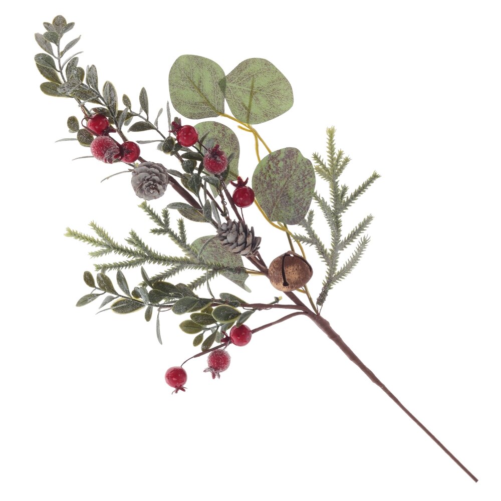 Изделие декоративное ветка, l26 w5 h46 см. Материал: Полимерные материалы/Натуральные материалы/Металл Новогодняя ветка станет стильным и праздничным украшением вашего дома! Эта декоративная ветка, выполненная в зимнем стиле, порадует вас своей красотой и изяществом. Ветка украшена заснеженными шишками и обледенелыми ягодами, что делает её особенно схожей с настоящей. Ветка будет отлично смотреться как в классическом, так и в современном интерьере. Её можно использовать как элемент декора на каминной полке, на столике в гостиной или в зимних композициях. Вес, кг: 0. 062