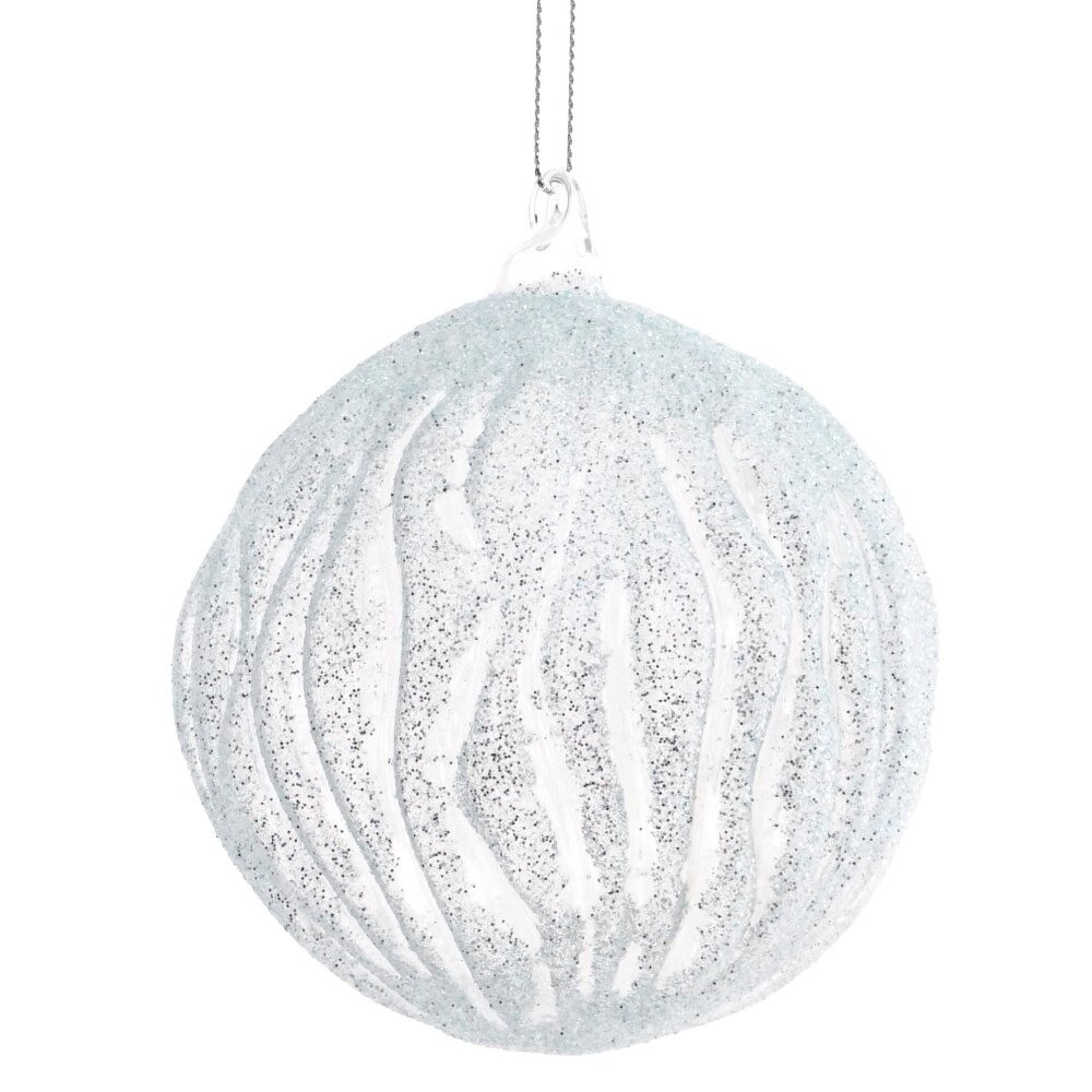 Украшение новогоднее шар, d 10 см, l10 w10 h11 см. Материал: Стекло Новогоднее украшение Шар изготовлено из тонкого и прочного стекла, что делает его легким и удобным для подвешивания на елку. Благодаря специальной технике исполнения и декорированию глиттером, изделие красиво переливается на свету. Шар будет прекрасно смотреться на елках любого стиля, придавая им ощущение волшебства и зимней красоты. Вес, кг: 0. 08