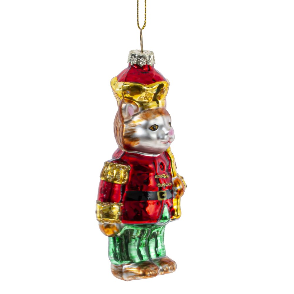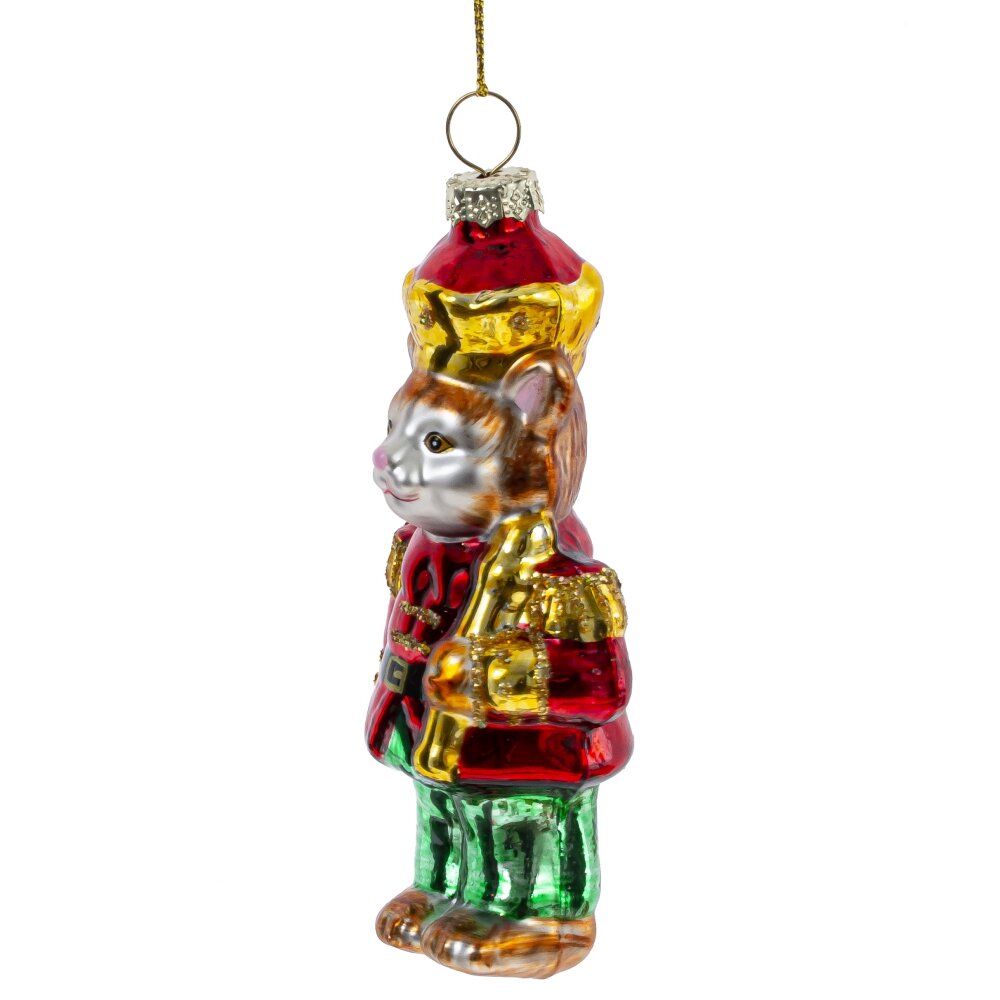 Украшение новогоднее котик, l5,5 w4 h12 см. Материал: Стекло Необычное и яркое новогоднее украшение из стекла — кот-солдатик, выполненный в традиционных праздничных цветах: насыщенном красном, зелёном и золотом. Эта игрушка сочетает в себе сказочный образ и новогоднюю классику. Ручная роспись, блестящие детали и выразительный характер фигурки делают её настоящим украшением ёлки. Кот-солдатик выглядит торжественно и весело, наполняя атмосферу праздника теплом, волшебством и ноткой юмора. Идеально подойдёт для создания яркого, запоминающегося декора или в качестве оригинального подарка. Вес, кг: 0. 026