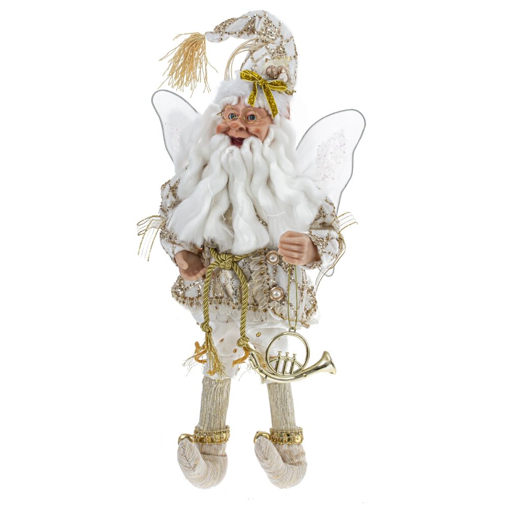 Украшение новогоднее дед мороз, l18 w9 h54/36 см. Материал: Полимерные материалы/Текстиль Новогоднее украшение Дед Мороз представляет собой подвесную игрушку, которая станет отличным дополнением вашего праздничного декора. Высотой 56 см (36 см в сидячем положении), этот Дед Мороз одет в нарядный бело-золотой костюм с крылышками эльфа, придающими ему волшебный облик. Внутри рук и ног находятся проволока, позволяющая им гнуться и создавать разнообразные позы. На колпаке предусмотрена петелька, с помощью которой игрушку легко подвесить в любом удобном месте. Этот милый и стильный Дед Мороз принесет в ваш дом уют, радость и новогоднее настроение, став центром внимания и любимым элементом праздничного убранства. Вес, кг: 0. 208