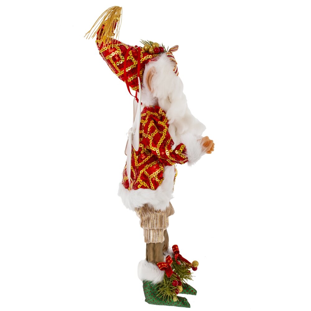 Украшение новогоднее дед мороз, l21 w10 h54/37 см. Материал: Полимерные материалы/Текстиль Новогоднее украшение Дед Мороз — это очаровательная подвесная игрушка, которая добавит вашему праздничному декору особый шарм. Высотой 54 см (в сидячем положении — 37 см), этот Дед Мороз облачен в яркий праздничный костюм с эльфийскими крыльями, что придает ему магический вид. Проволока внутри рук и ног позволяет менять позы, создавая различные образы. На его колпаке есть петелька для подвешивания. Этот стильный Дед Мороз принесет в ваш дом тепло, радость и праздничное настроение, став ярким акцентом вашего новогоднего убранства. Вес, кг: 0. 22