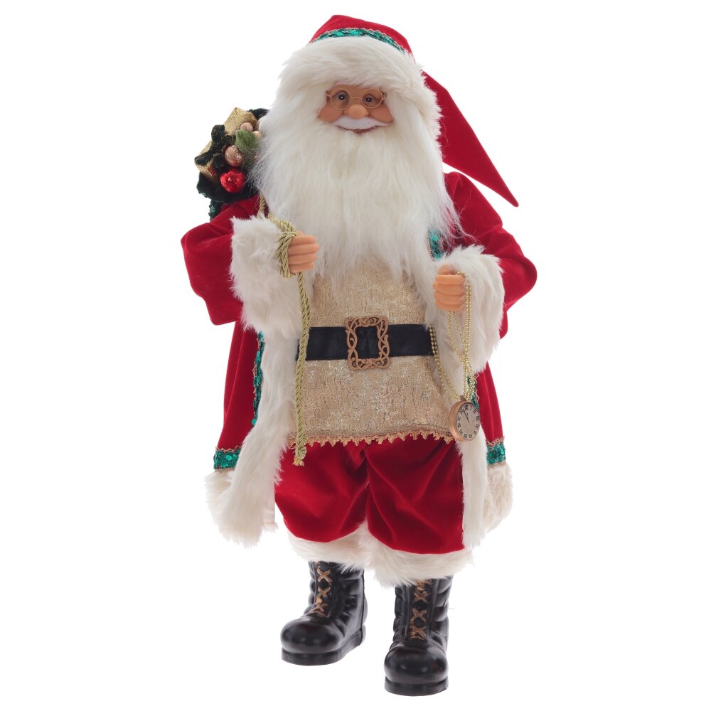 Дед мороз, l33 w32 h62 см. Материал: Полимерные материалы/Текстиль Дед Мороз впечатляет своим размером 34x28x92 см и детализацией. От костюма из красного бархата до выразительного лица - каждая деталь проработана великолепно. Из полимерных материалов выполнены лицо, руки и сапоги, придающие образу реализм. В руках у Деда Мороза мешок с подарками и даже часы на цепочке. Вес, кг: 0. 928