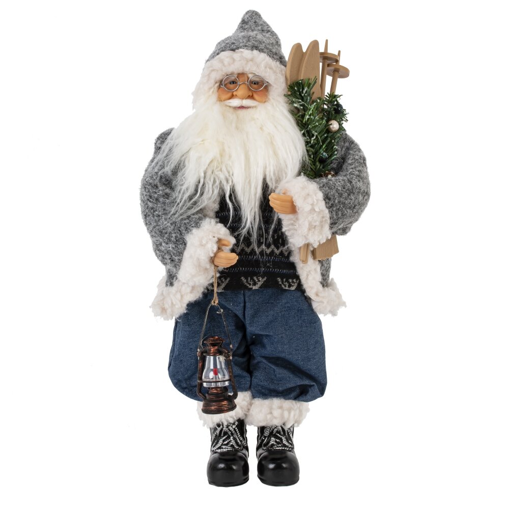 Дед мороз, l23 w20 h45 см. Материал: Полимерные материалы/Текстиль Дед Мороз – это очаровательная декоративная кукла, высотой 47 см, которая сразу же привлекает внимание своей яркой и запоминающейся внешностью. Он одет в стильное серое пальто с аккуратной меховой отделкой, что придает ему ощутимый зимний шарм. Уютный синий свитер, ставит акцент на его добродушный образ и теплоту. В руках у дедушки лыжи, которые символизируют активный зимний отдых и фонарик, чтобы не заблудится в сумерках. Лицо куклы выполнено с особым вниманием к деталям: добрый взгляд, трогательные черты лица и выразительные глаза делают его живым и непосредственным. Руки и сапоги выполнены из полимерных материалов, что обеспечивает долговечность и сохранность внешнего вида. Пушистая борода дополняет образ, подчеркивая традиционные черты. Эта декоративная кукла станет прекрасным украшением вашего дома в зимний сезон, создавая волшебную атмосферу праздника и уюта. Вес, кг: 0. 519