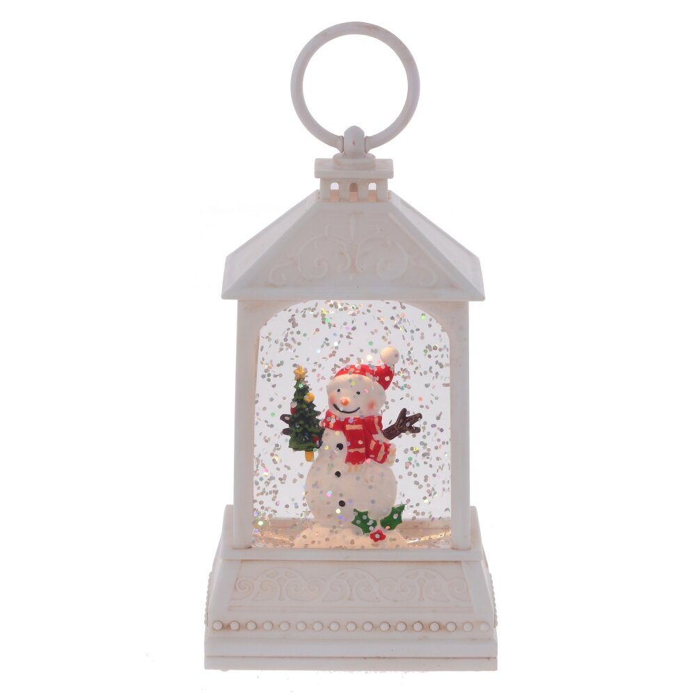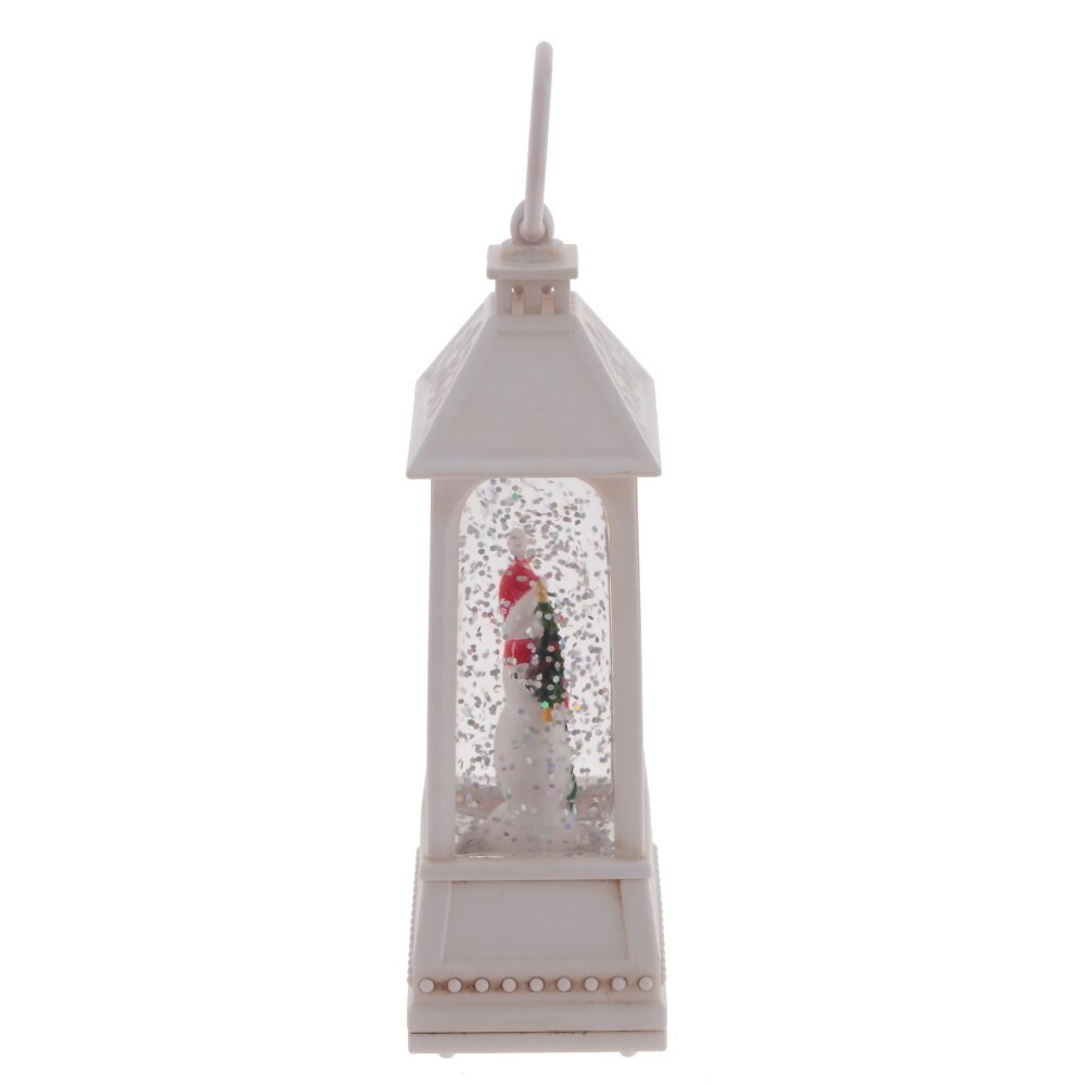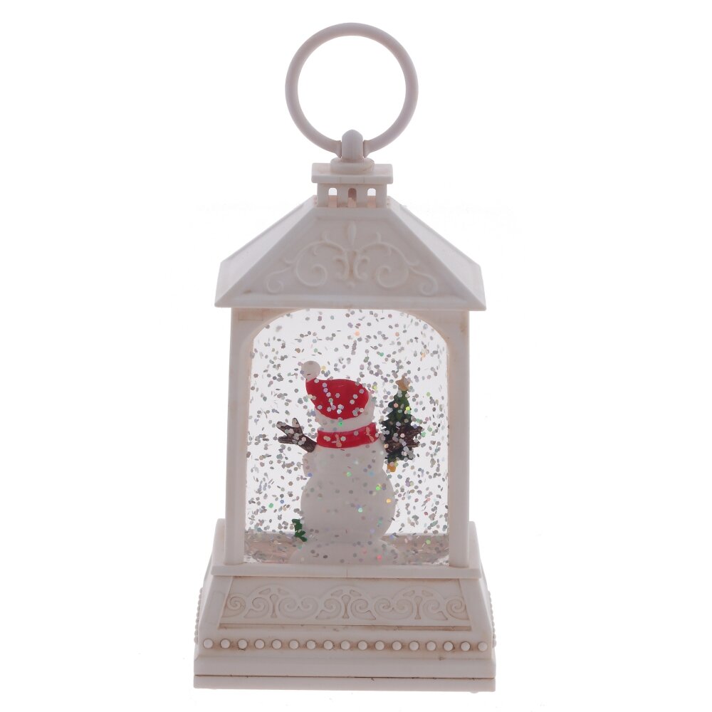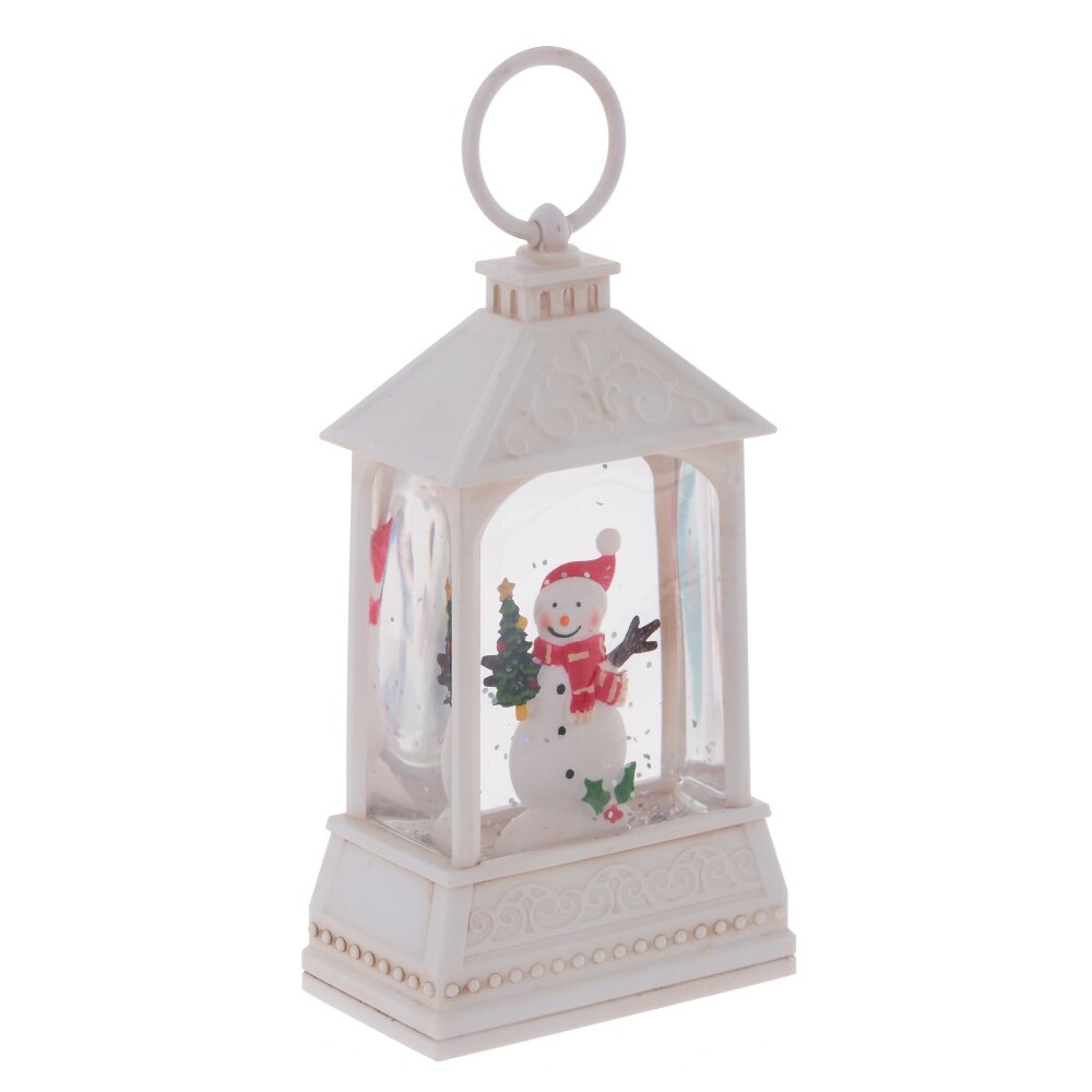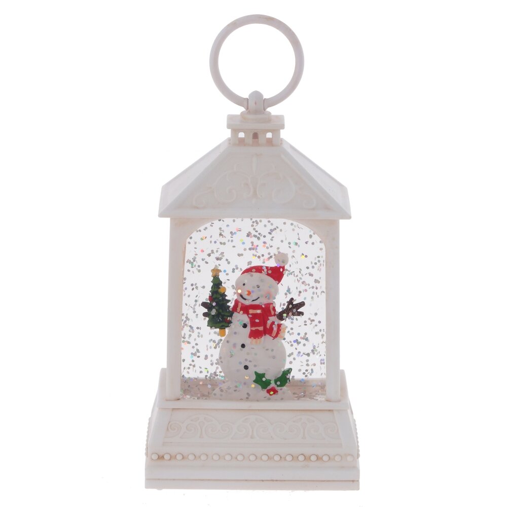 Изделие декоративное фонарь (подсвет, aaaх2 н/п) l7 w4 h13,5 см. Материал: Полимерные материалы Декоративная фигурка Фонарик со светодиодной подсветкой высотой 13,5 см выполнена в форме старинного фонаря белого цвета. Внутри изделия изображена зимняя сцена с веселым снеговиком в красной шапке с шарфом и елочкой в руке. Внутренняя часть фонаря наполнена глицерином — прозрачной жидкостью, с блестящими частицами, которые при встряхивании создают завораживающий эффект, особенно в сочетании с подсветкой. Удобное колечко для переноса можно опустить. Высота с поднятым кольцом 16,5 см. Переключатель находится в основании фонаря. Для освещения требуются две батарейки типа ААА, которые не входят в комплект. Это очаровательное декоративное изделие обязательно привнесет нотку зимнего чуда в любую комнату и станет восхитительным дополнением вашего праздничного декора. Обратите внимание на температурный режим отгрузки выше 0°С Вес, кг: 0. 277