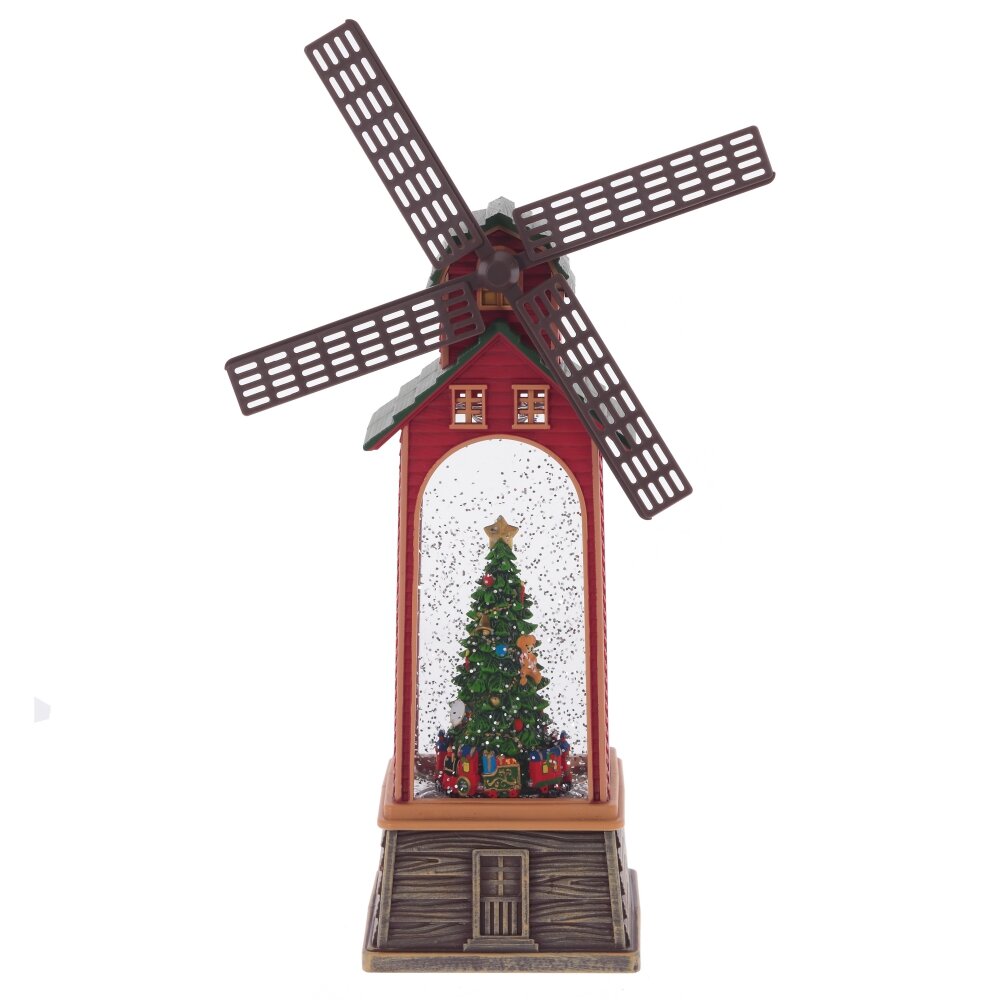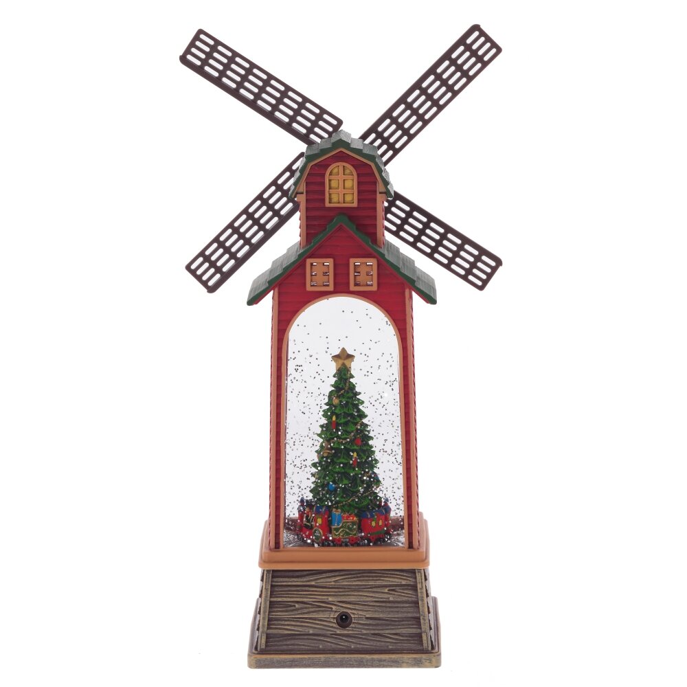 Изделие декоративное мельница (подсвет, вьюга, муз, движ, Aa х3 н/п +usb) L17 W10 H34 см