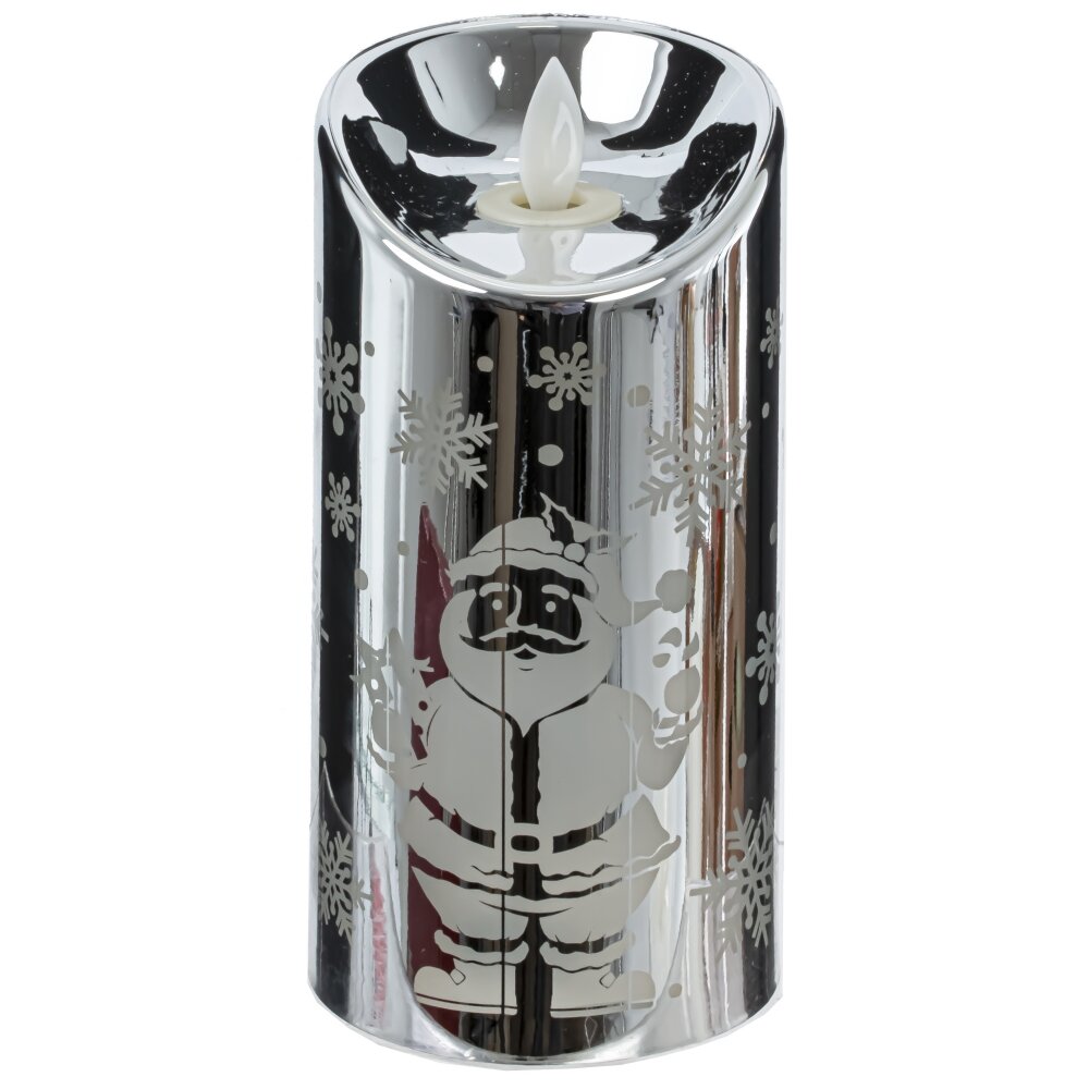 Изделие декор свеча серебряный дед мороз (подсвет, aaaх3 н/п) l7,5 w7,5 h14,5 см. Материал: Полимерные материалы Декоративная LED-свеча Серебряный Дед Мороз – это великолепный элемент новогоднего декора, который создаст уют и праздничное настроение в вашем доме. Свеча оформлена в глянцевом серебряном цвете, украшена изображением Деда Мороза и снежинок, которые подсвечиваются изнутри. Имитация огня создает атмосферу тепла и комфорта, при этом она абсолютно безопасна для людей и домашних животных. Работает от трёх батареек типа AAA (не прилагаются). Эта свеча станет прекрасным акцентом на вашем праздничном столе или в интерьере! Вес, кг: 0. 087