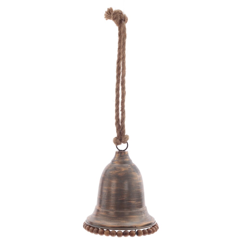 Изделие декоративное подвесное колокольчик, l16 w16 h19 см. Материал: Металл Этот стильный декоративный подвесной колокольчик привлечет внимание своим изысканным дизайном. Окрашенный в бронзовый цвет, он придает интерьеру изысканный вид. Джутовая веревка для подвешивания добавляет колокольчику естественности и уюта. Этот аксессуар станет прекрасным дополнением к вашему домашнему декору. Вес, кг: 0. 252