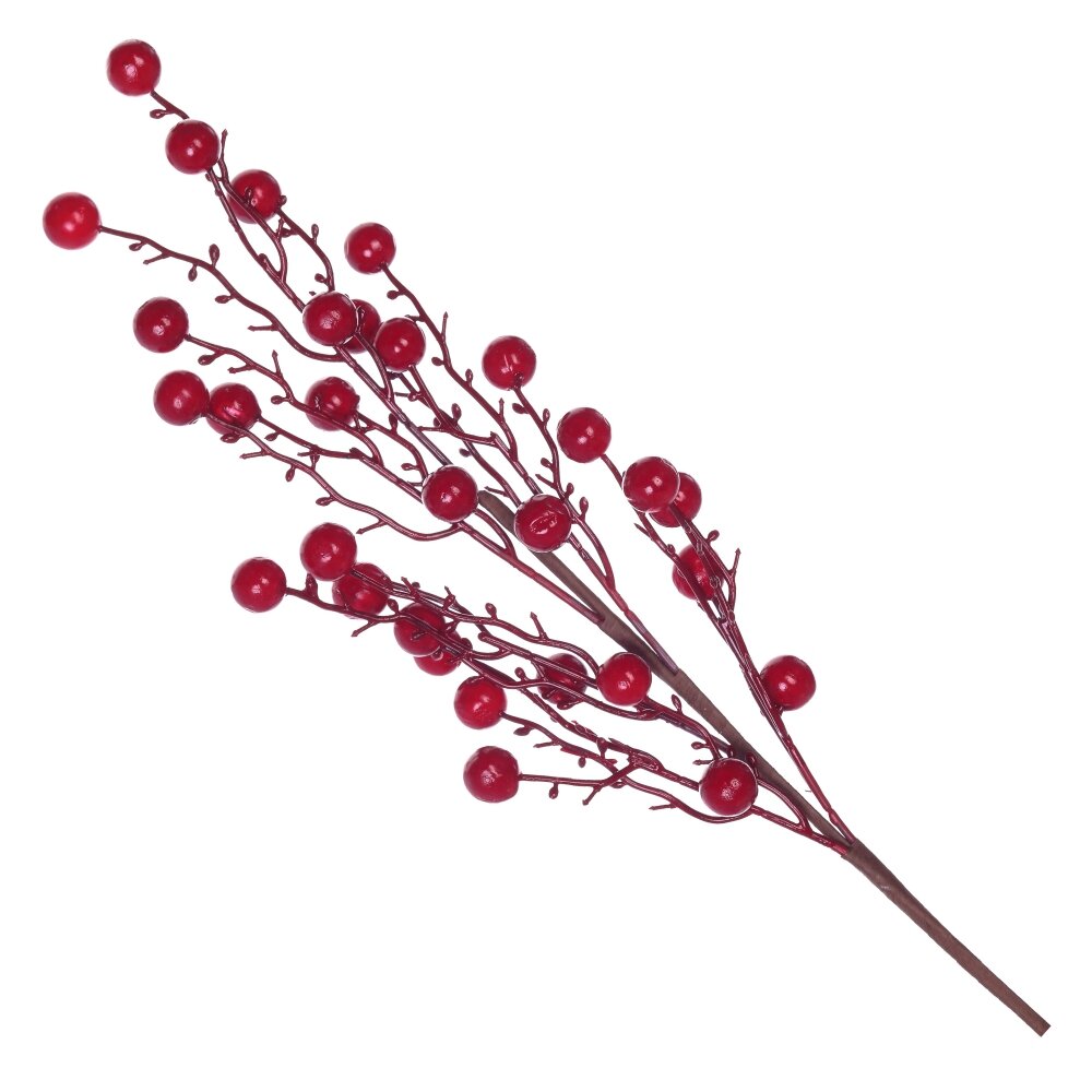 Очень эффектно смотрятся полыхающие красные ягоды. Эта контрастная ветка, несомненно, заслуживает почётного места в праздничной композиции.