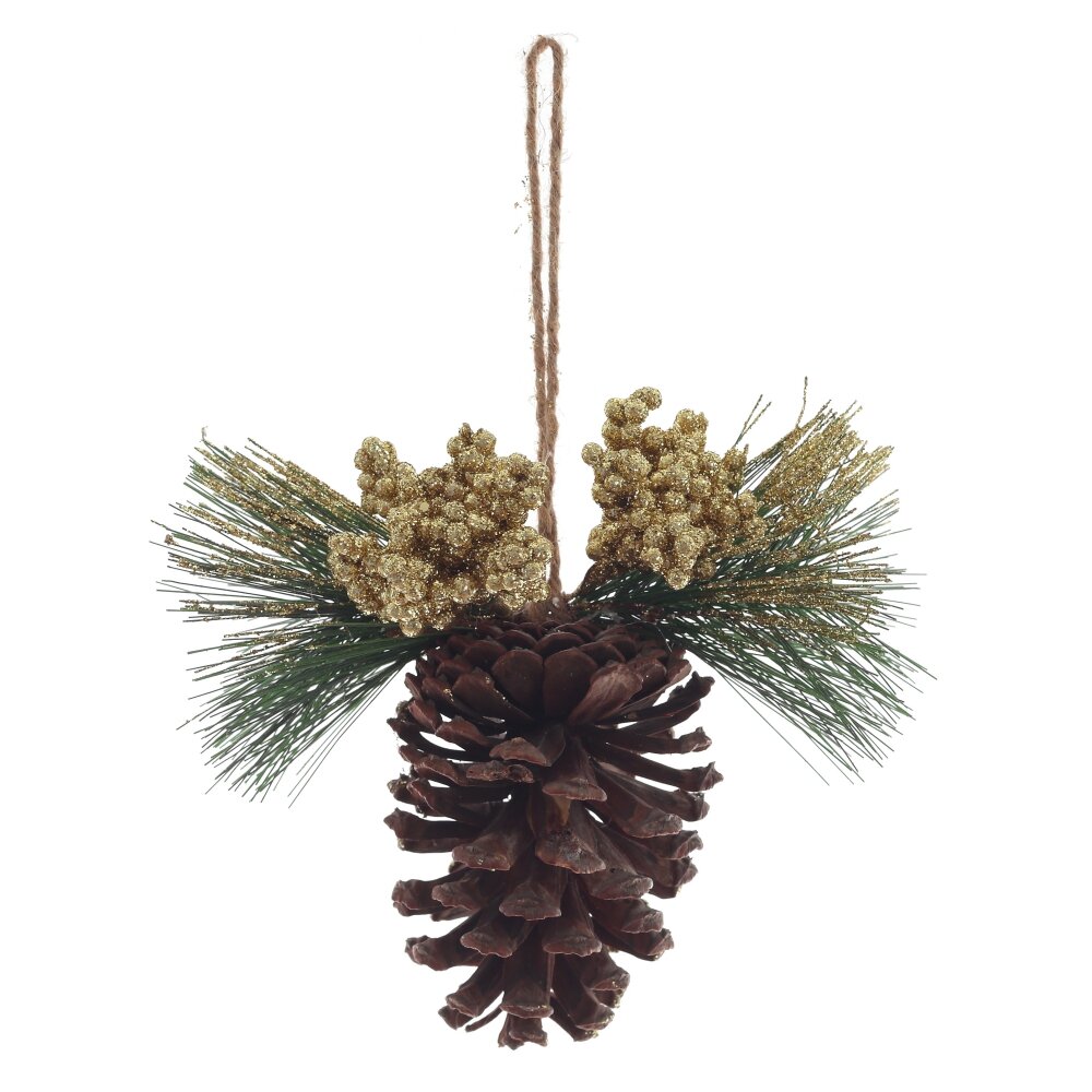 Изделие декоративное подвесное шишка, l18 w9 h18 см. Материал: Натуральные материалы/Полимерные материалы Новогоднее подвесное украшение в виде натуральной шишки, которая украшена искусственными веточками и ягодами. Вес, кг: 0. 067