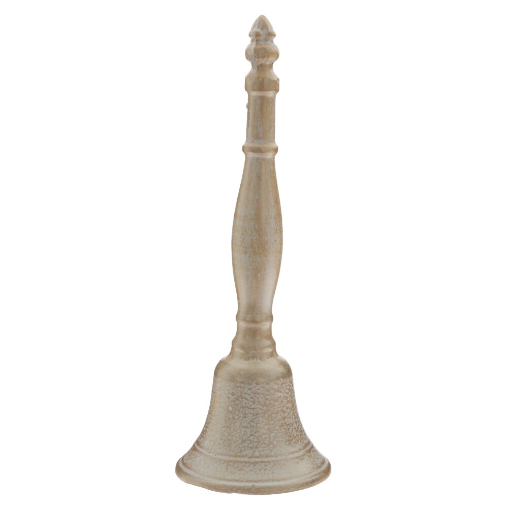 Изделие декоративное колокольчик, l9 w9 h26 см. Материал: Металл Декоративный новогодний аксессуар Колокольчик выполнен из металла с золотым матовым покрытием, что придает ему особое изящество. Отлично впишется в интерьер как самостоятельный элемент декора, так и в качестве дополнения в новогодней композиции. Станет необычным подарком вашим близким на Новый год. Его нежный звон создаст атмосферу волшебства и радости, напоминая о близящемся празднике. Вес, кг: 0. 444