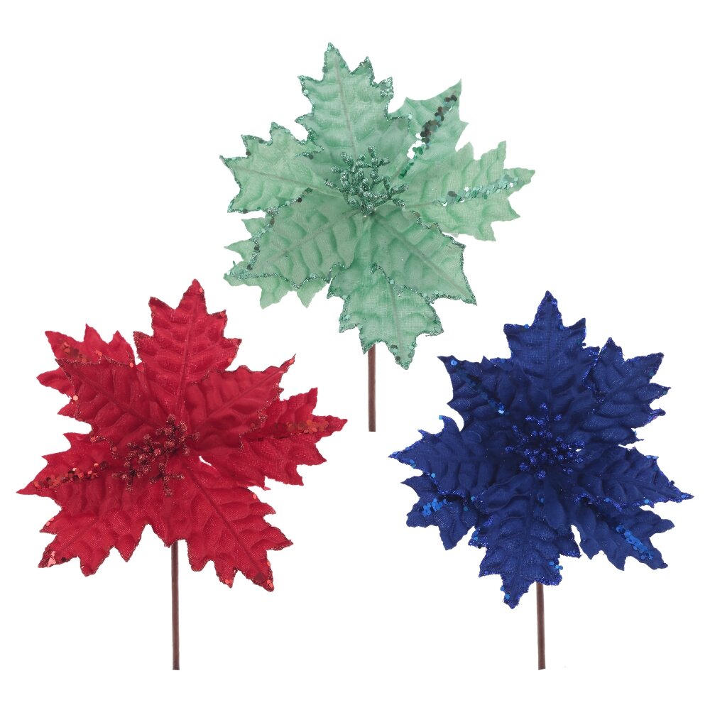 Цветок искусственный пуансеттия, L20 W20 H20 см, 3в.