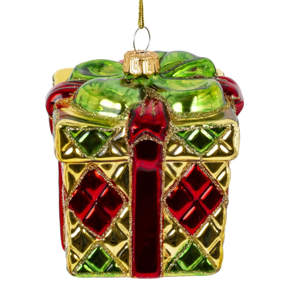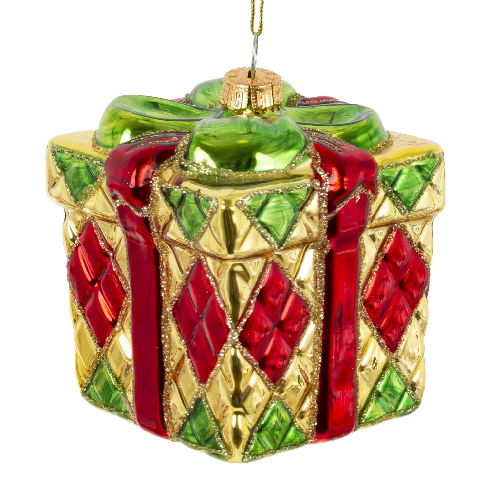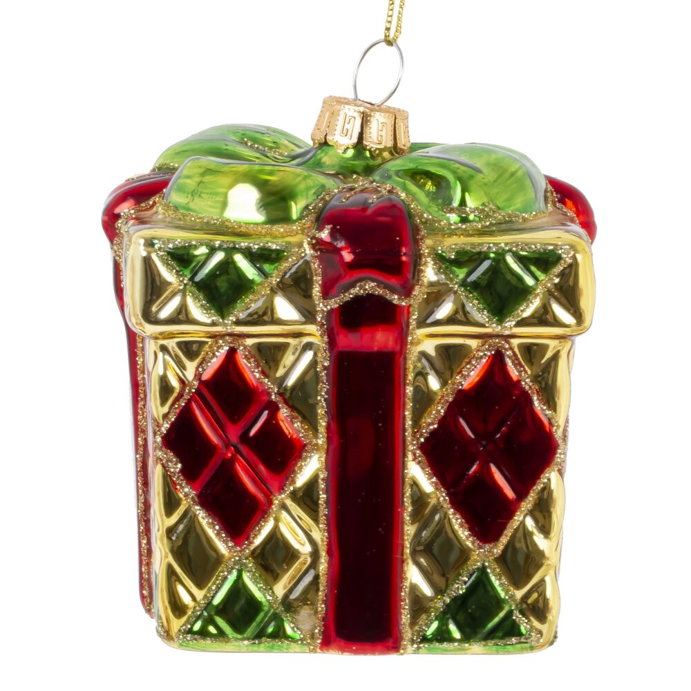 Украшение новогоднее подарок, l8 w8 h8 см. Материал: Стекло Вес, кг: 0. 053