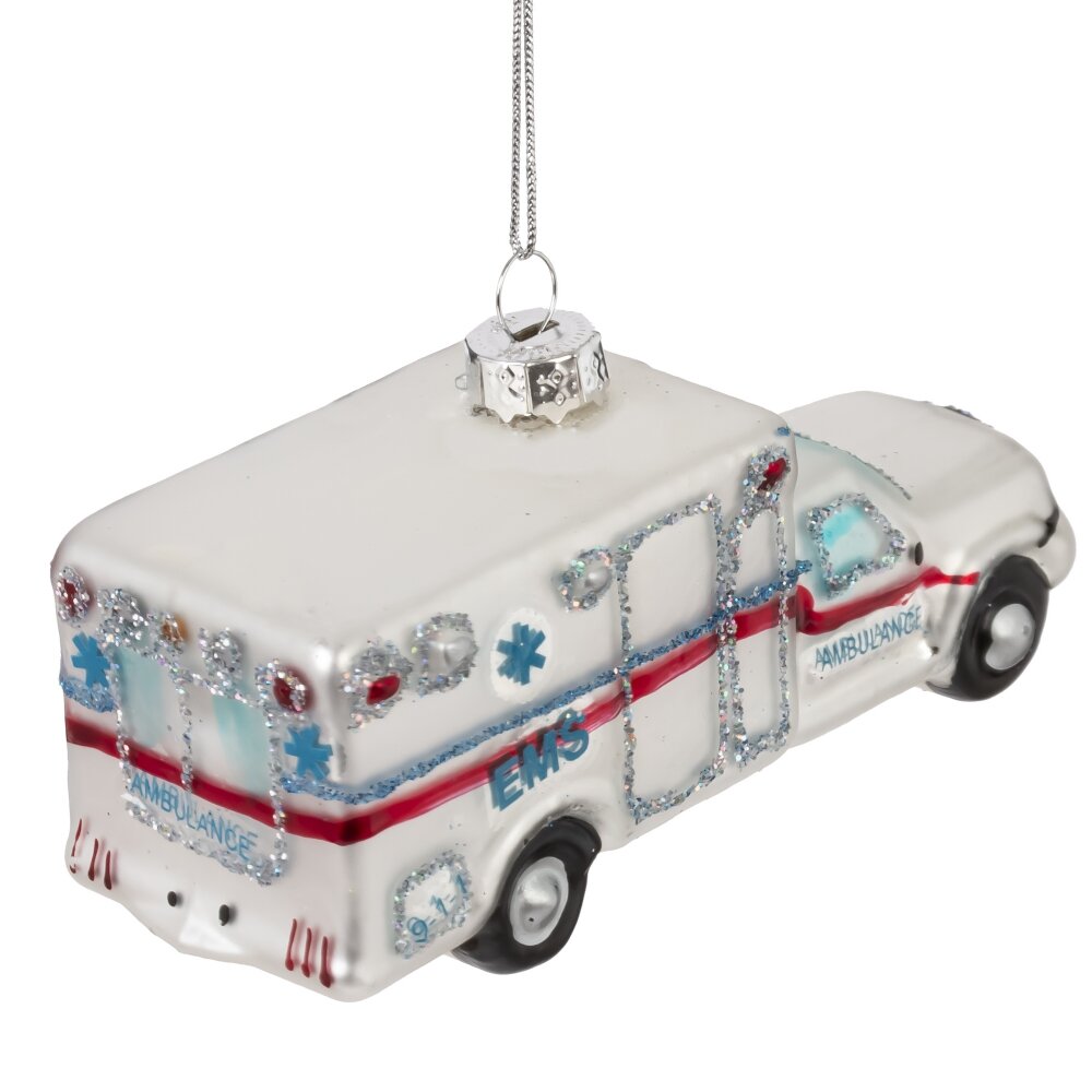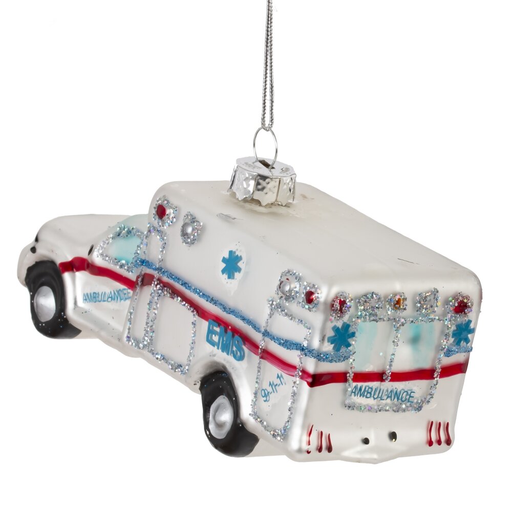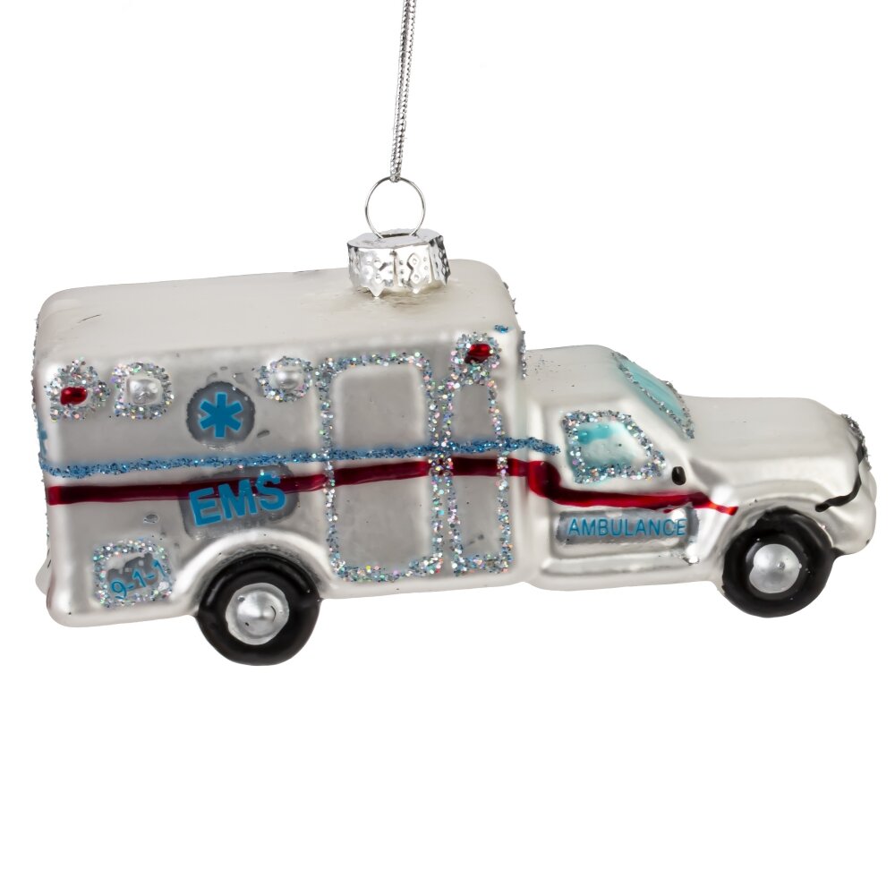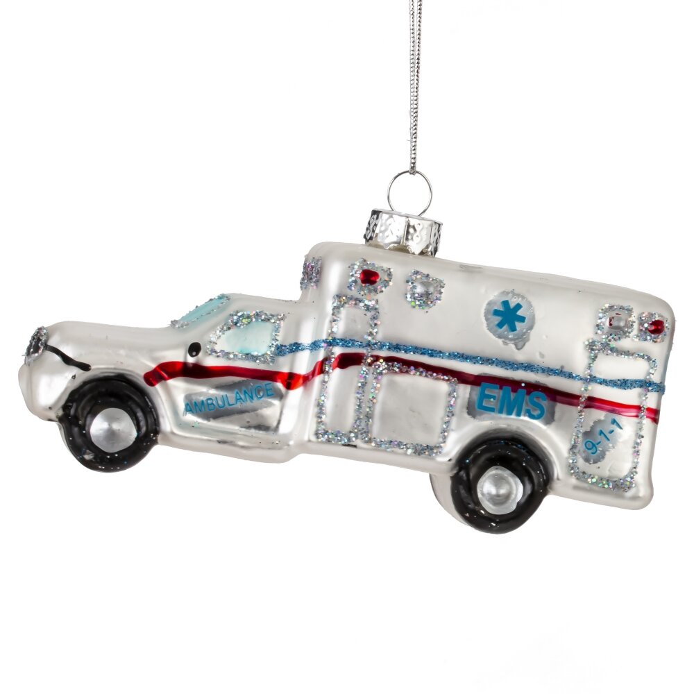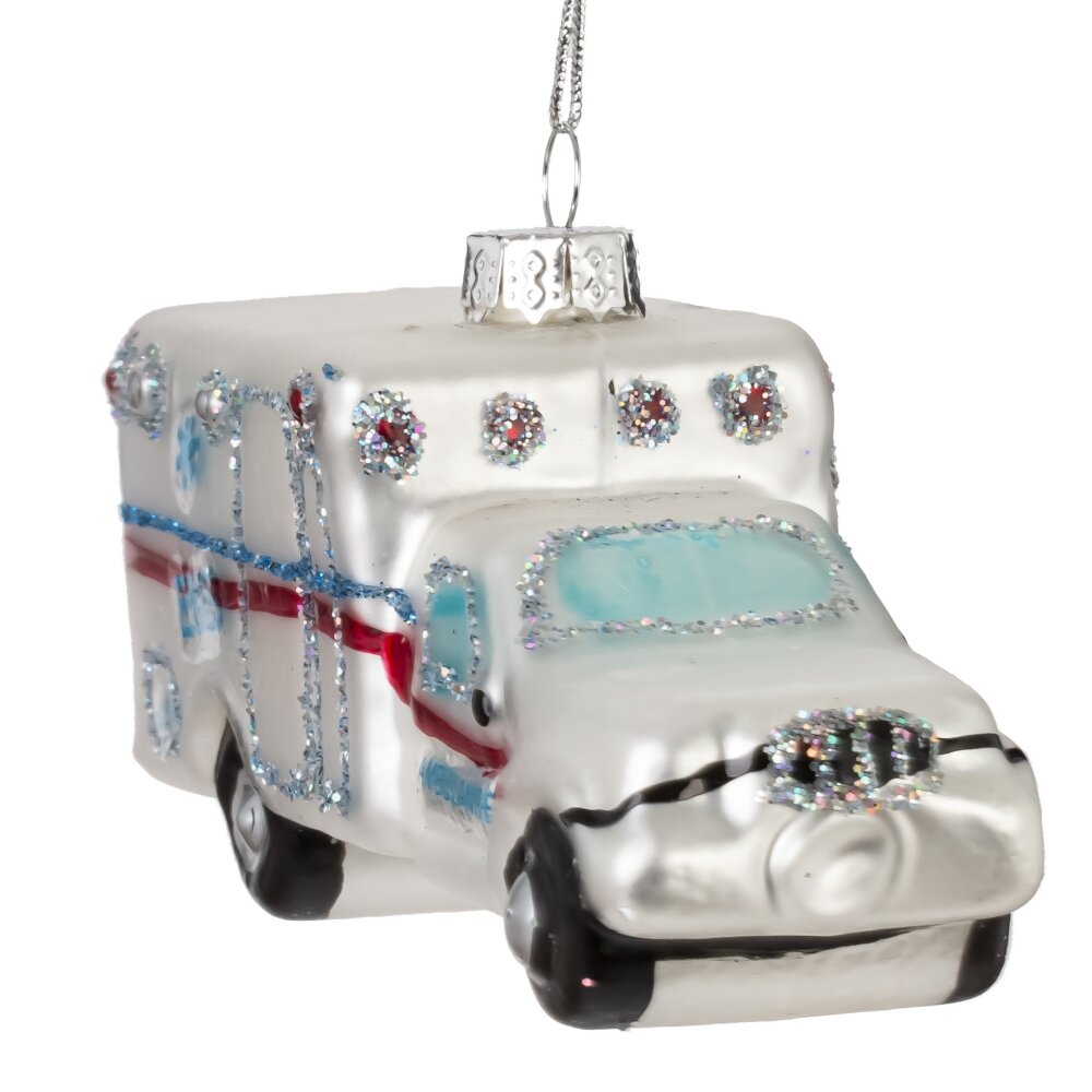 Украшение новогоднее машинка, l11,5 w4 h5,5 см. Материал: Стекло Оригинальное новогоднее украшение из стекла в виде машины скорой помощи — это не только необычный элемент декора, но и символ заботы, поддержки и добрых дел. Выполненная с высокой детализацией, игрушка украшена мерцающим шиммером, который красиво играет в свете гирлянд, придавая образу праздничный блеск. . Такое украшение станет отличным подарком для медицинских работников или просто добавит тёплый, душевный акцент на ёлке, напоминая, что Новый год — время доброты и настоящих героев. Вес, кг: 0. 031