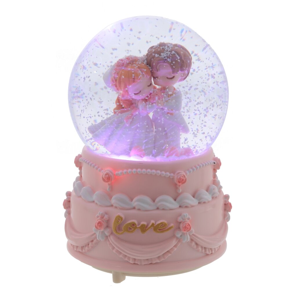 Фигурка декор жених с невестой в стекл шаре (муз, подсвет, вьюга, 3xaaa н/п), d10, l10 w10 h16 см. Материал: Полимерные материалы/Стекло Фигурка Жених с невестой в стеклянном шаре - это магический элемент декора, который добавит настроения вашему интерьеру. Фигурка расположена внутри стеклянного шара диаметром 10 см, закрепленного на основании из полимерного материала. При включении активируется несколько элементов: искусственный снег начинает подниматься вверх, создавая эффект вьюги, освещение включается несколькими цветами, вызывая чувство волшебства. Особенно приятно слушать играющую музыку, которая добавляет атмосферу праздника и радости. Фигурка работает от трех батареек типа ААА (не прилагаются). Обратите внимание на температурный режим отгрузки выше 0°С Вес, кг: 0. 954