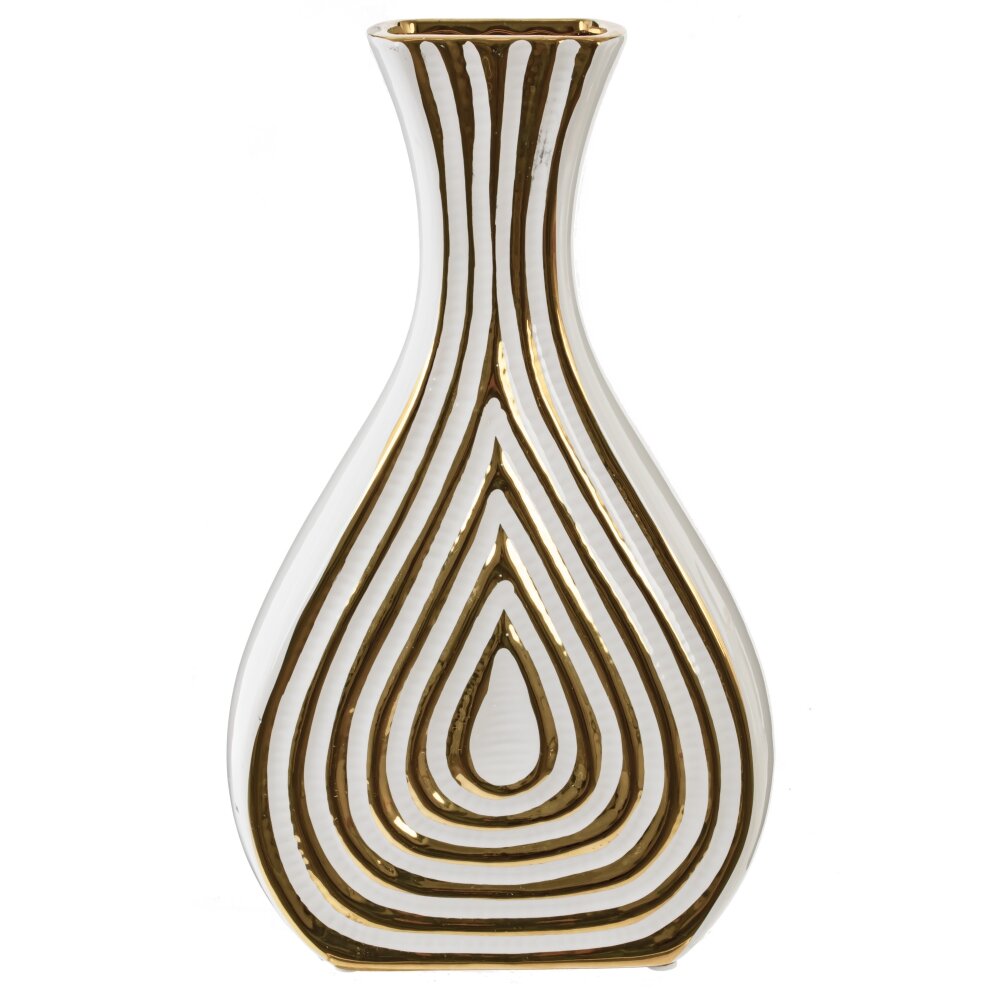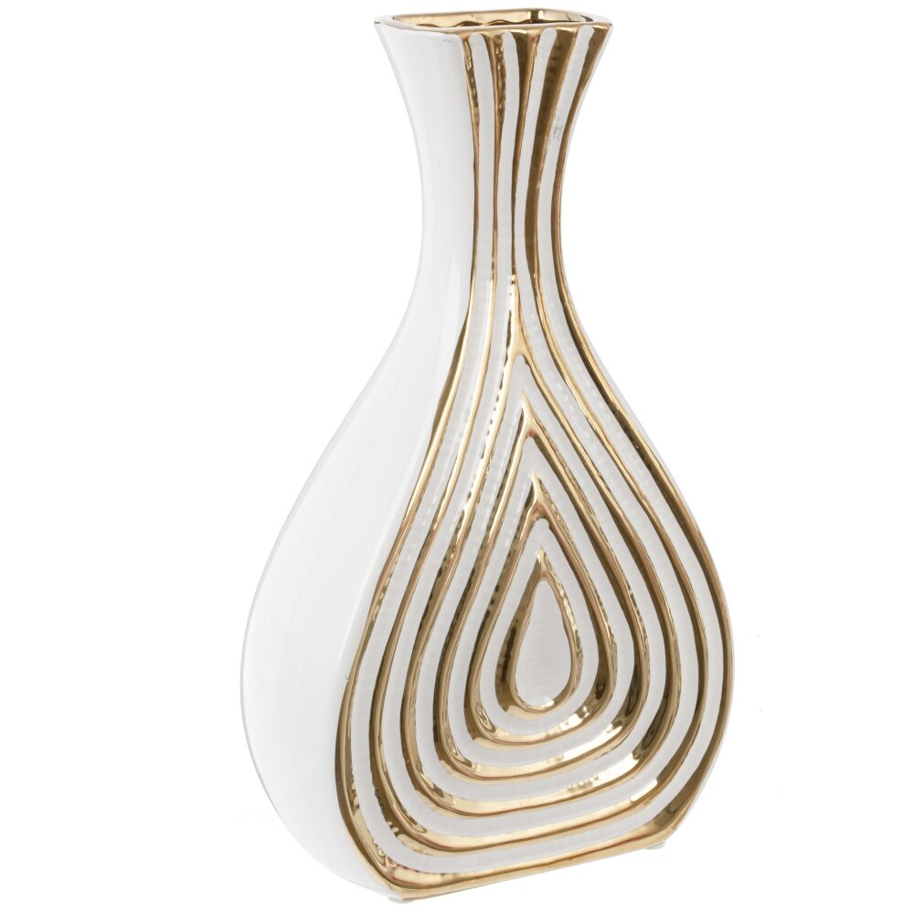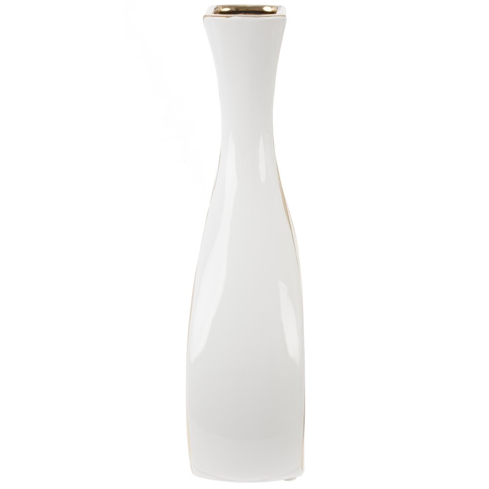 Ваза, 1500 мл, l17 w7,5 h29,5 см. Материал: Фарфор Эта изысканная ваза для цветов станет прекрасным украшением для любого интерьера. Она идеально подходит для создания великолепных композиций из цветов, добавляя нотку элегантности и стиля в пространство. Размеры делают её универсальной: она гармонично впишется как в классику, так и в современный стиль. Изготовленная из высококачественного фарфора, ваза демонстрирует превосходное качество и долговечность. Оригинальная форма изделия привлекает внимание, а белый цвет в сочетании с золотым декором придаёт ему особую изысканность и шик. Размер горловины 6,5*4 см обеспечивает легкость в размещении различных типов цветов и зелени, а также облегчает процесс их замены и ухода. Эта ваза не просто функциональный предмет, но и настоящая арт-объект, способный стать центром внимания в вашем доме или офисе. Расставив в вазе цветы, вы сможете создать атмосферу уюта и гармонии, которая придаст вашему пространству живость и энергию. Кроме того, такая ваза станет отличным подарком для близких, отмечая важные события и моменты вашей жизни. Вес, кг: 1. 02