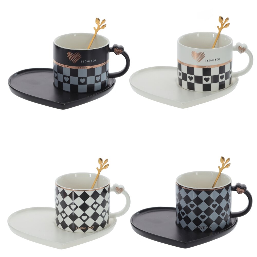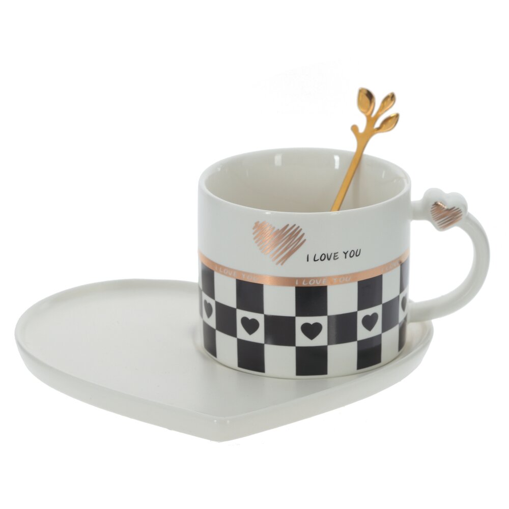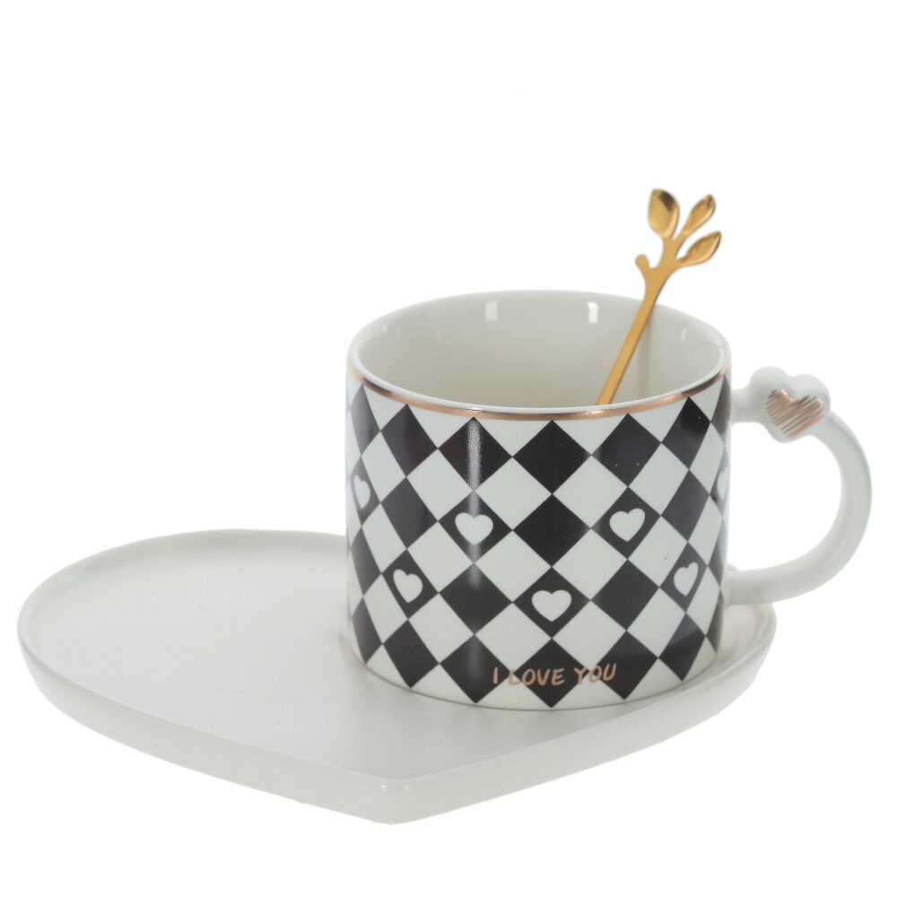 Кружка с блюдцем и ложкой, 220 мл, L16 W14 H7,5 см, 4в.