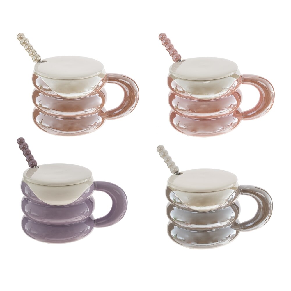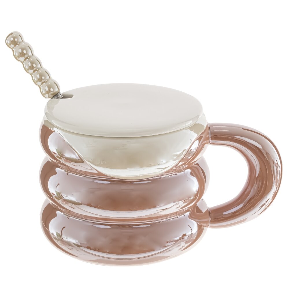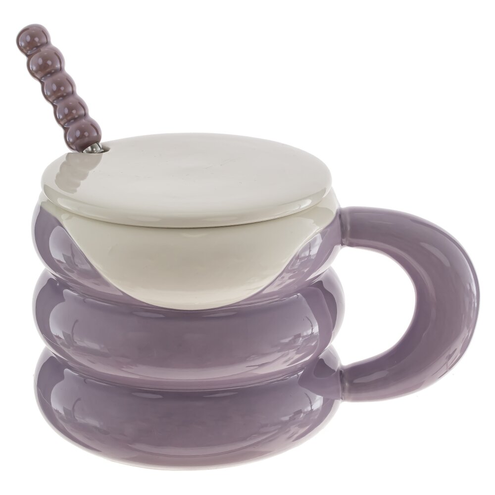Кружка с крышкой и ложкой, 420 мл, L9,5 W9,5 H8 см, 4в.