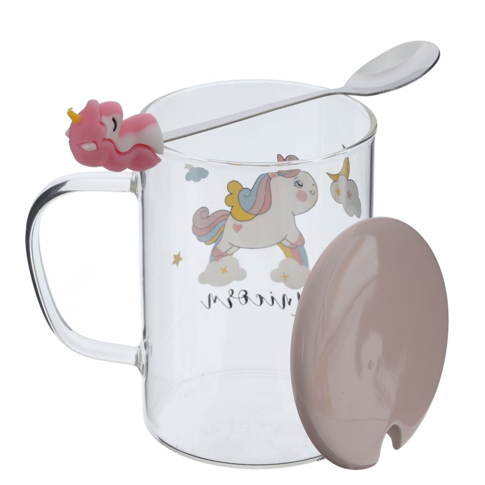 Кружка с крышкой и ложкой 450 мл, L8 W8 H11 см