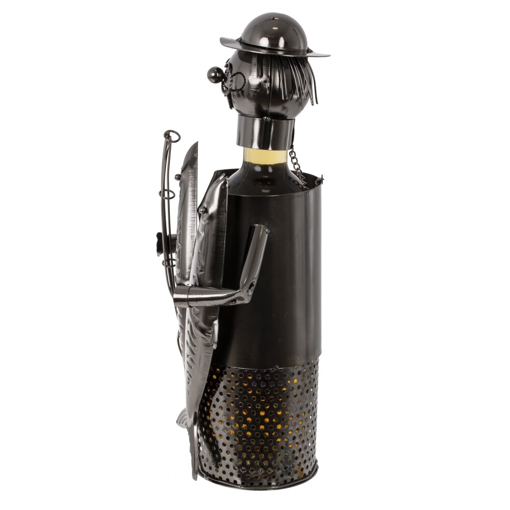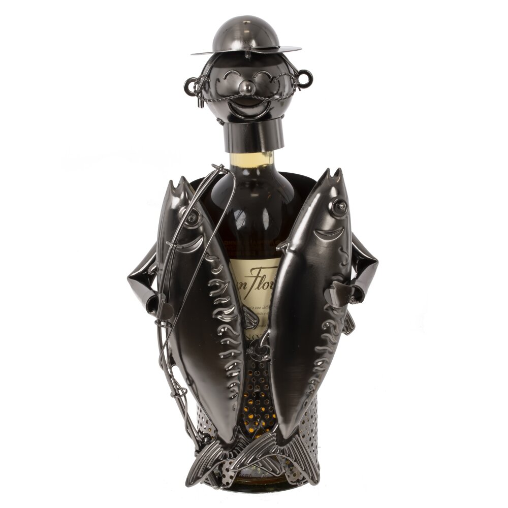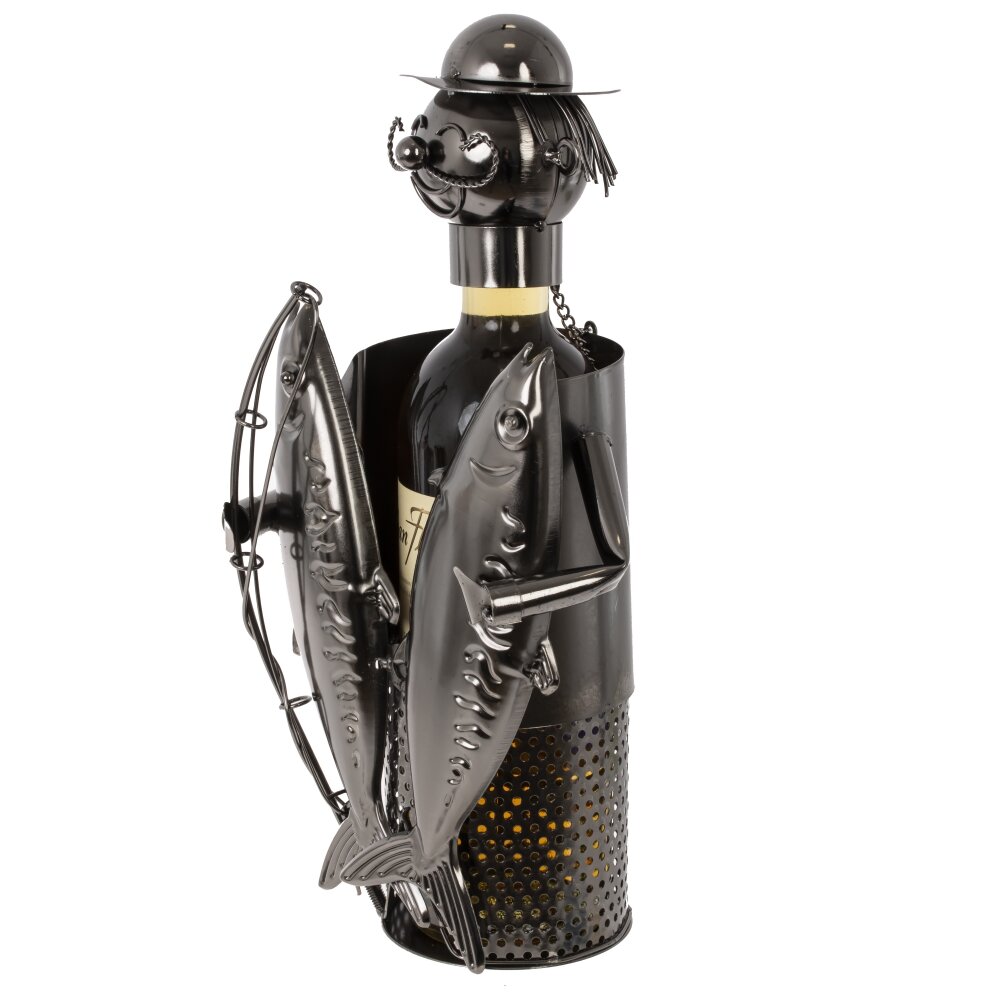 Подставка для бутылки рыбак, l16 w11 h21 см. Материал: Металл Эта уникальная подставка для бутылки станет ярким акцентом в интерьере вашего дома или дачи. Выполненная из прочного металла, она выражает художественное видение через образ рыбака, который с гордостью держит в руках двух пойманных рыб. Размеры подставки - 16 см в длину, 11 см в ширину и 21 см в высоту, делают ее компактной, но в то же время достаточно заметной. Серый цвет придаёт ей универсальный и современный вид, позволяя гармонично вписаться в различные стили оформления. Эта подставка не только функциональна, но и служит интересным декором, создавая атмосферу уюта и расслабления. Она станет отличным подарком для любителей рыбалки или просто тех, кто ценит оригинальные предметы интерьера. Ненавязчивый, но выразительный дизайн позволит использовать ее не только на кухне или столовой, но и в гостиных, помещениях для барбекю и на пикниках. Какой бы стиль вы ни выбрали, эта подставка будет великолепно дополнять ваш интерьер. Вес, кг: 0. 54