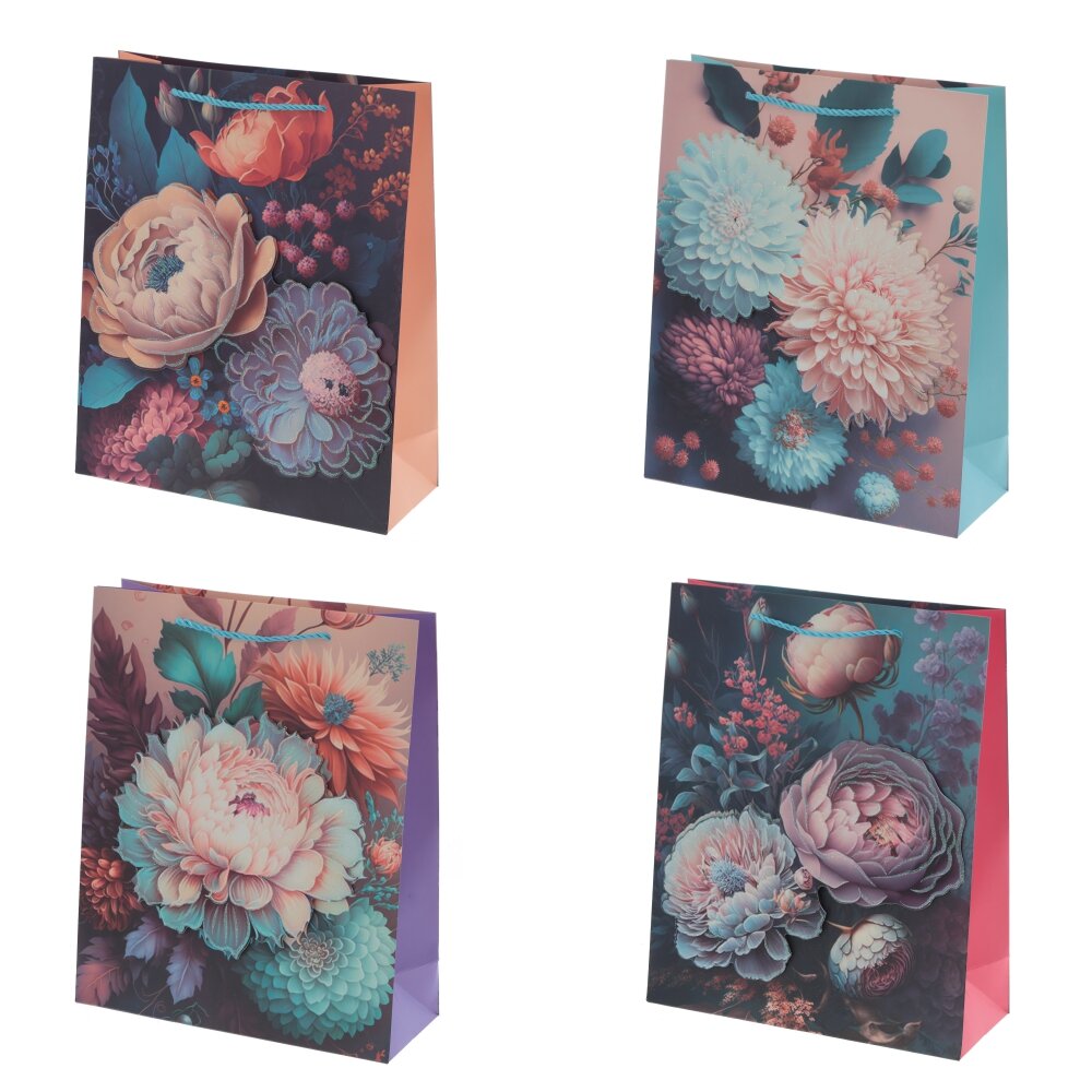 Пакет подарочный (бумага 210г/м2, блок микс 12шт), L26 W10 H32 см, 4в.